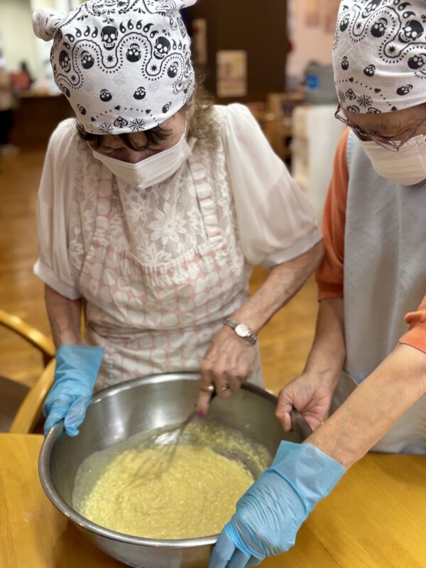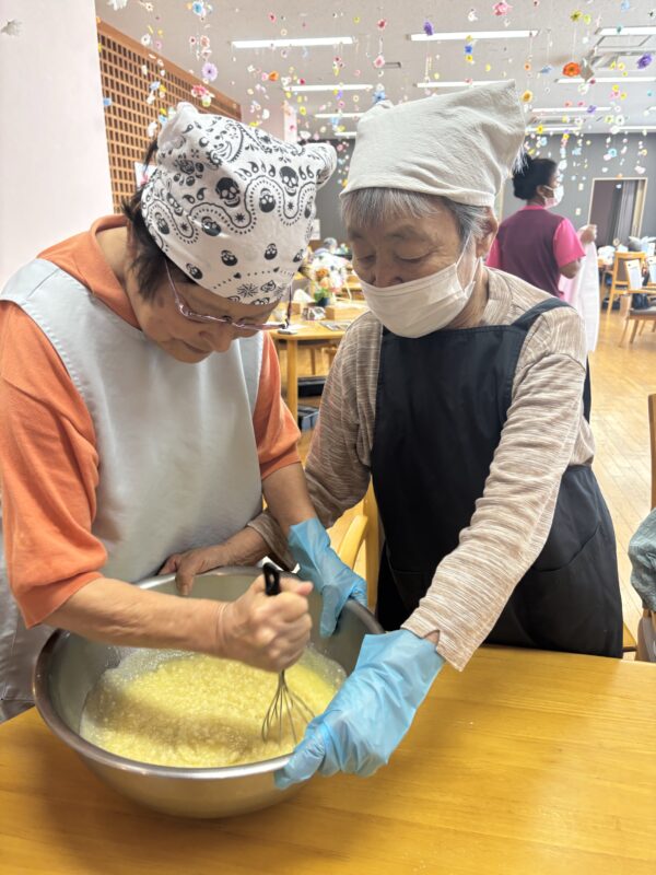 そんな酒粕を使ったケーキをお客様と一緒に作成😊40人分ともなると大変ねえ~と話しながらも完成するとフロア中に良い香りが✨