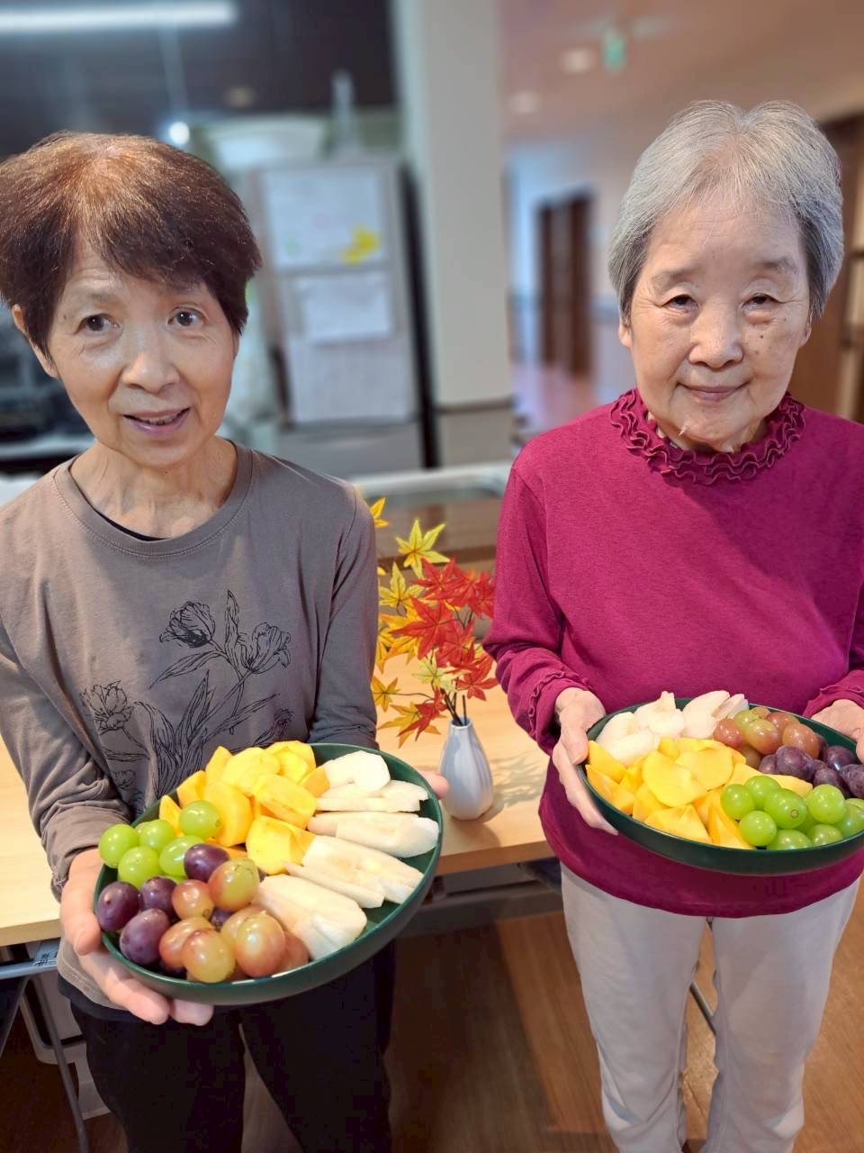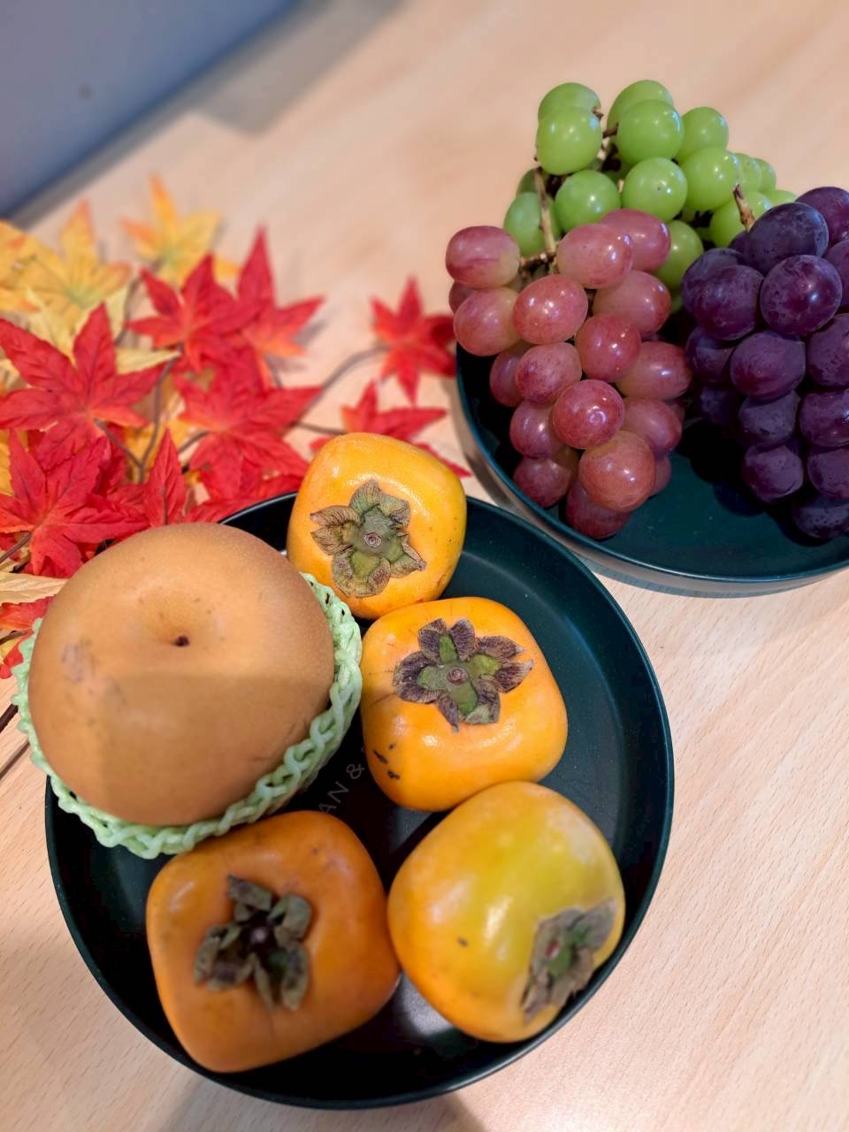 15時のおやつには秋のフルーツを召し上がっていただきました🍇🍎🍏