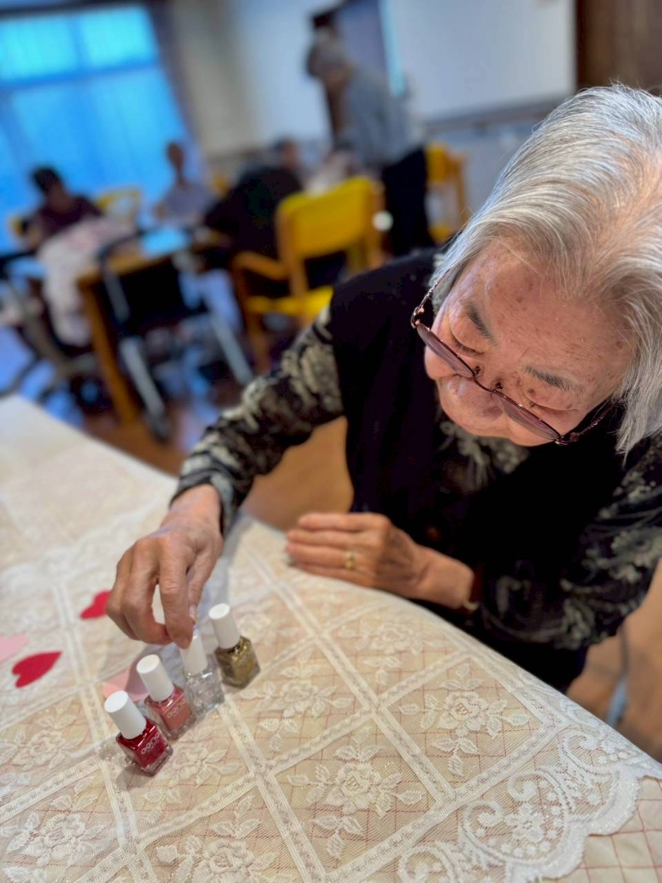 ご希望された利用者様にはマニキュアを塗らせていただき、指先から華やかに💅✨