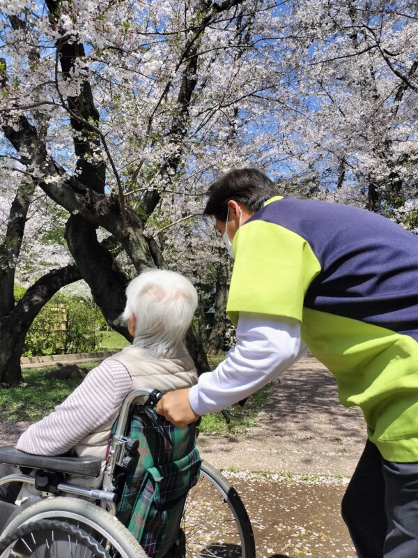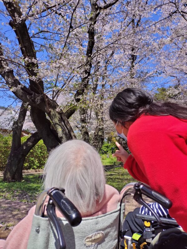 お天気にも恵まれ、美しく咲き誇る桜が広がり、穏やかな春のひとときを過ごすことができました。職員が付き添いながらゆっくりと散策し、皆さま景色を楽しまれていました。