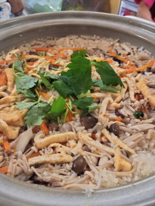 土鍋で炊いたキノコご飯は香りも良く少しお焦げが多かったですが味は美味しく出来上がり