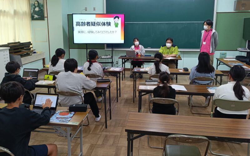 生徒たちも積極的に福祉機器の体験を希望され、質問や感想もたくさんいただき、活気のある授業となりました。