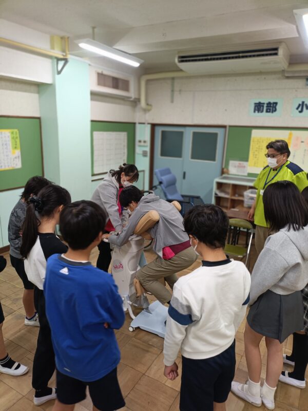 介護ロボット体験では、移乗支援ロボットに挑戦しました。
