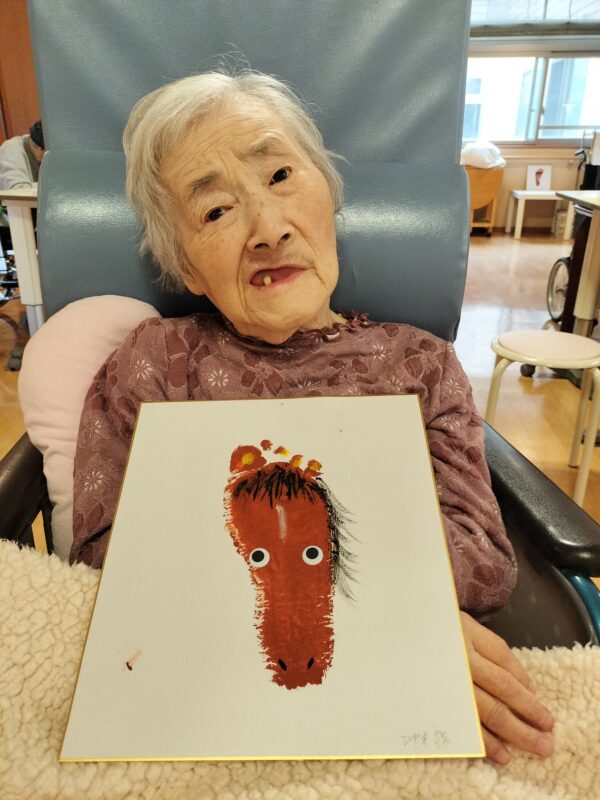 今年の干支「馬」にちなんで、あしがた制作を行いました。
