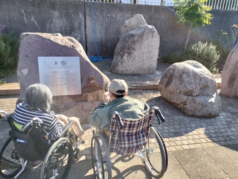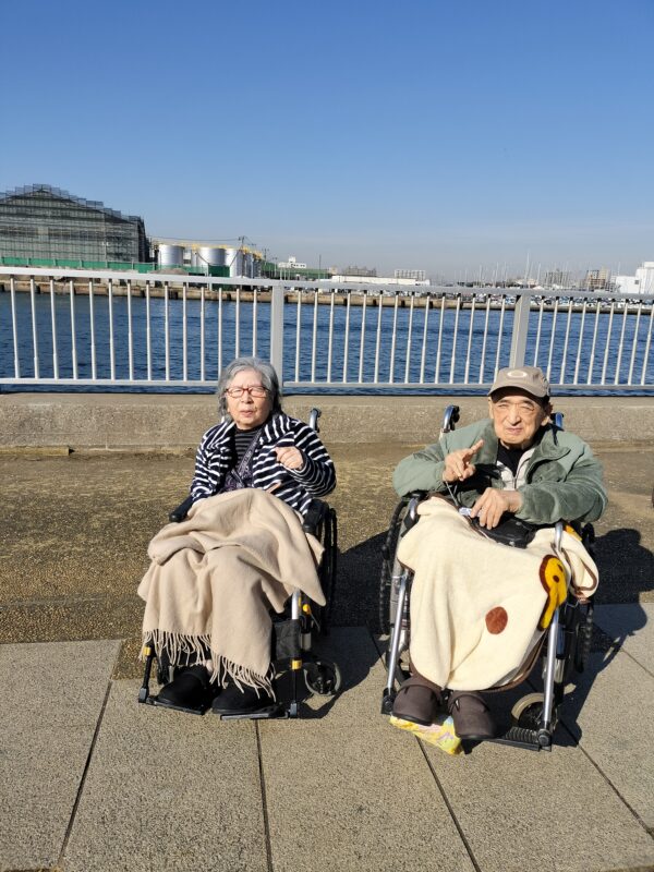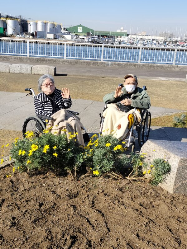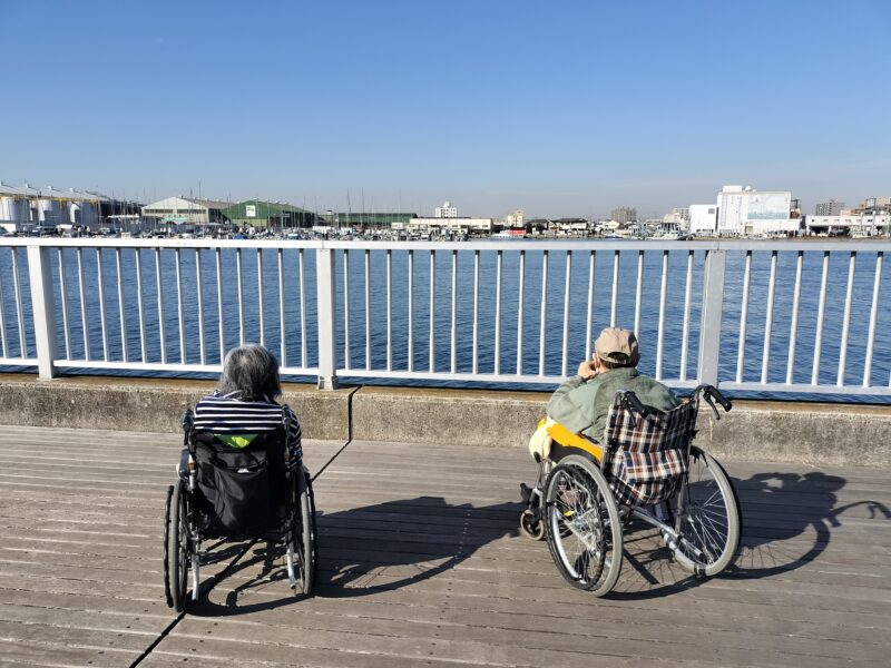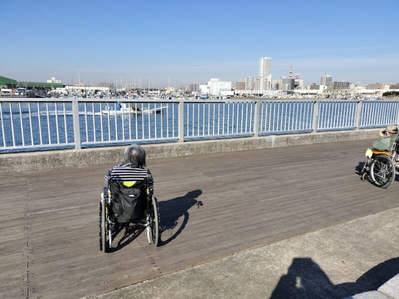 冬の空気は少しひんやりしていましたが日差しがあり暖かく、海からの心地よい風と青い空が気持ちよく、嬉しそうに景色を眺めていました。