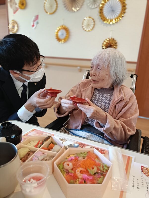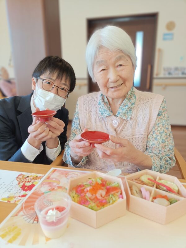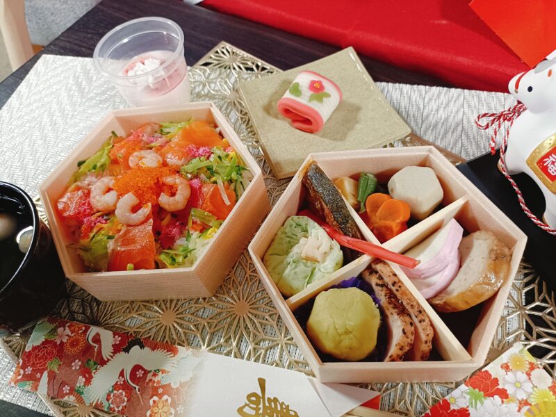 本日は朝と昼でおせちをお出しし、お客様と新年のお祝いをしました(^^)/