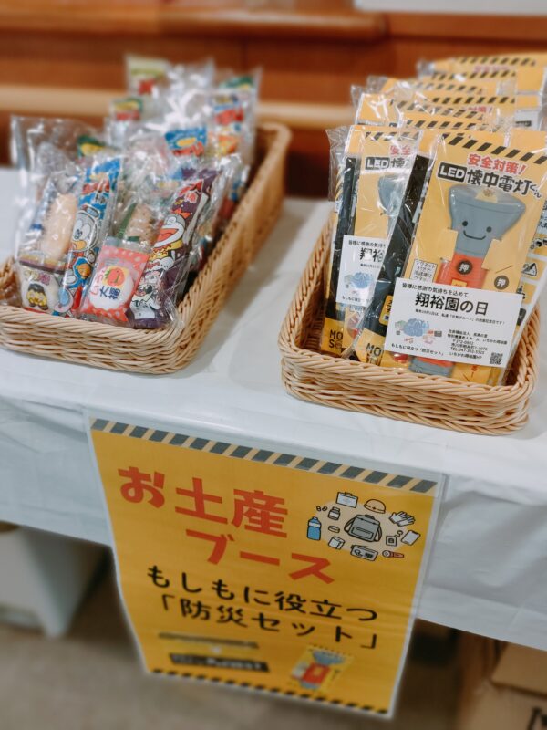 ご来園頂いた方にはお土産として、防災3点セット(LED懐中電灯くん/レジャーシート/携帯トイレ)をプレゼントさせて頂きました。