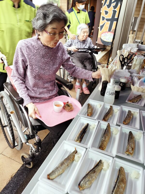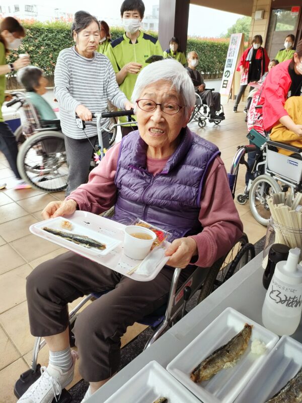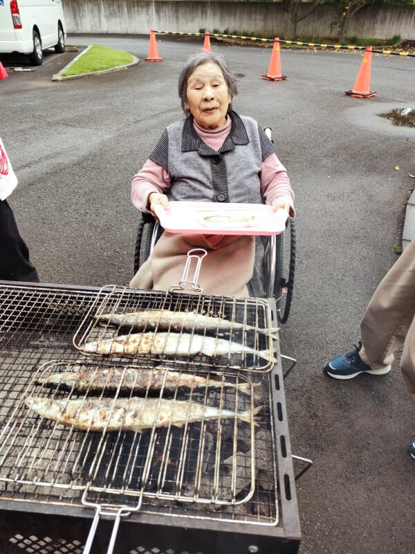 施設のお客様も炭火で焼いた「さんま」に驚きながら、美味しいね!と沢山召し上がってくださいました(^^)/