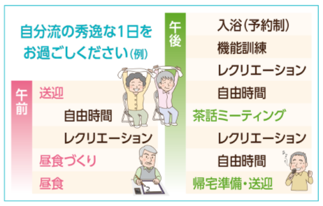 また、昼食やおやつ、入浴など楽しい時間が過ごせます。