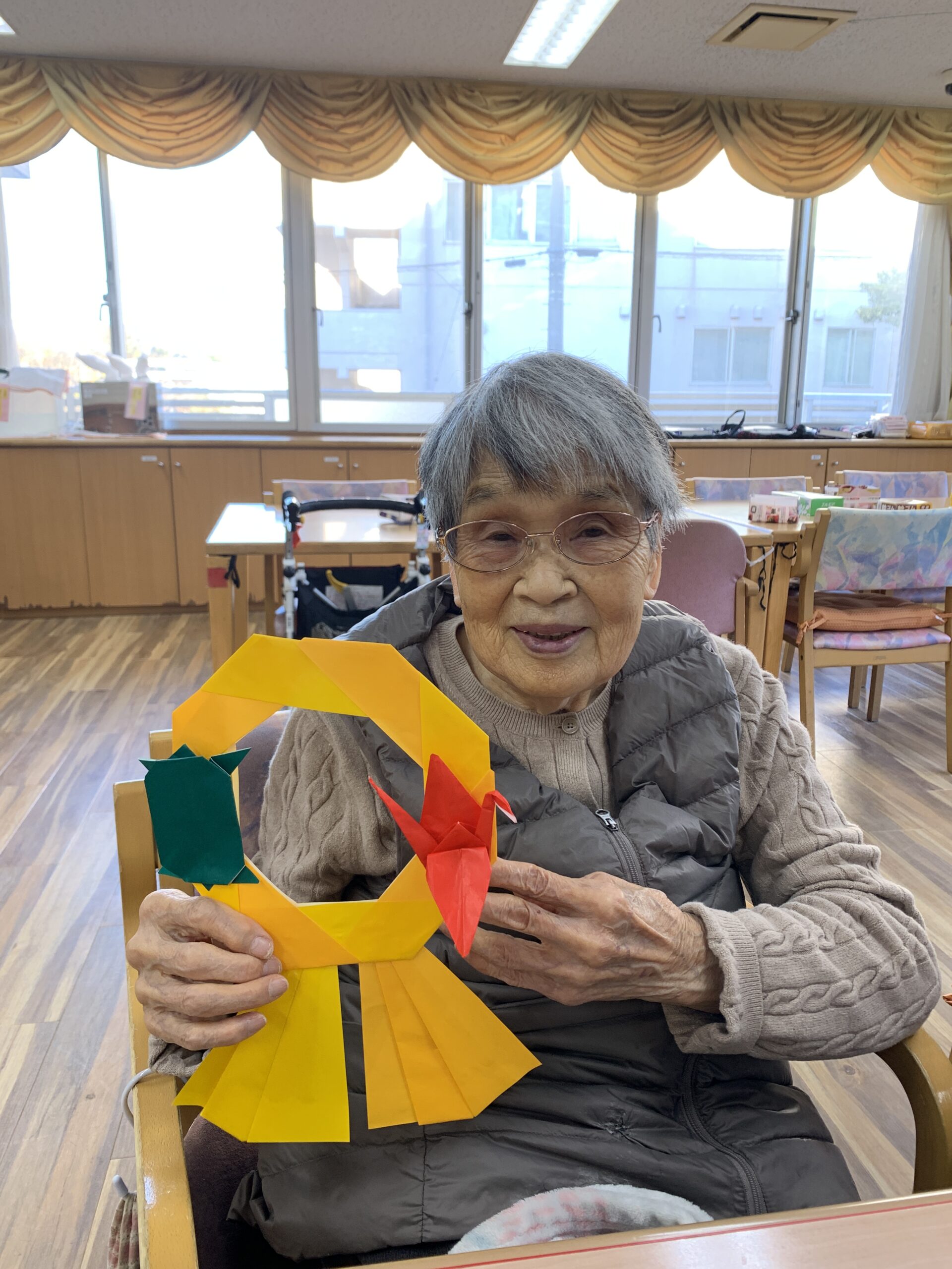 今日は午後からダンベル体操と折り紙に分かれてアクティビティを行いました!! ダンベル体操では曲に合わせて体を動かしたりと全身運動に取り組みました。 折り紙では、しめ縄をイメージして縄や鶴・亀を折りまし[...]