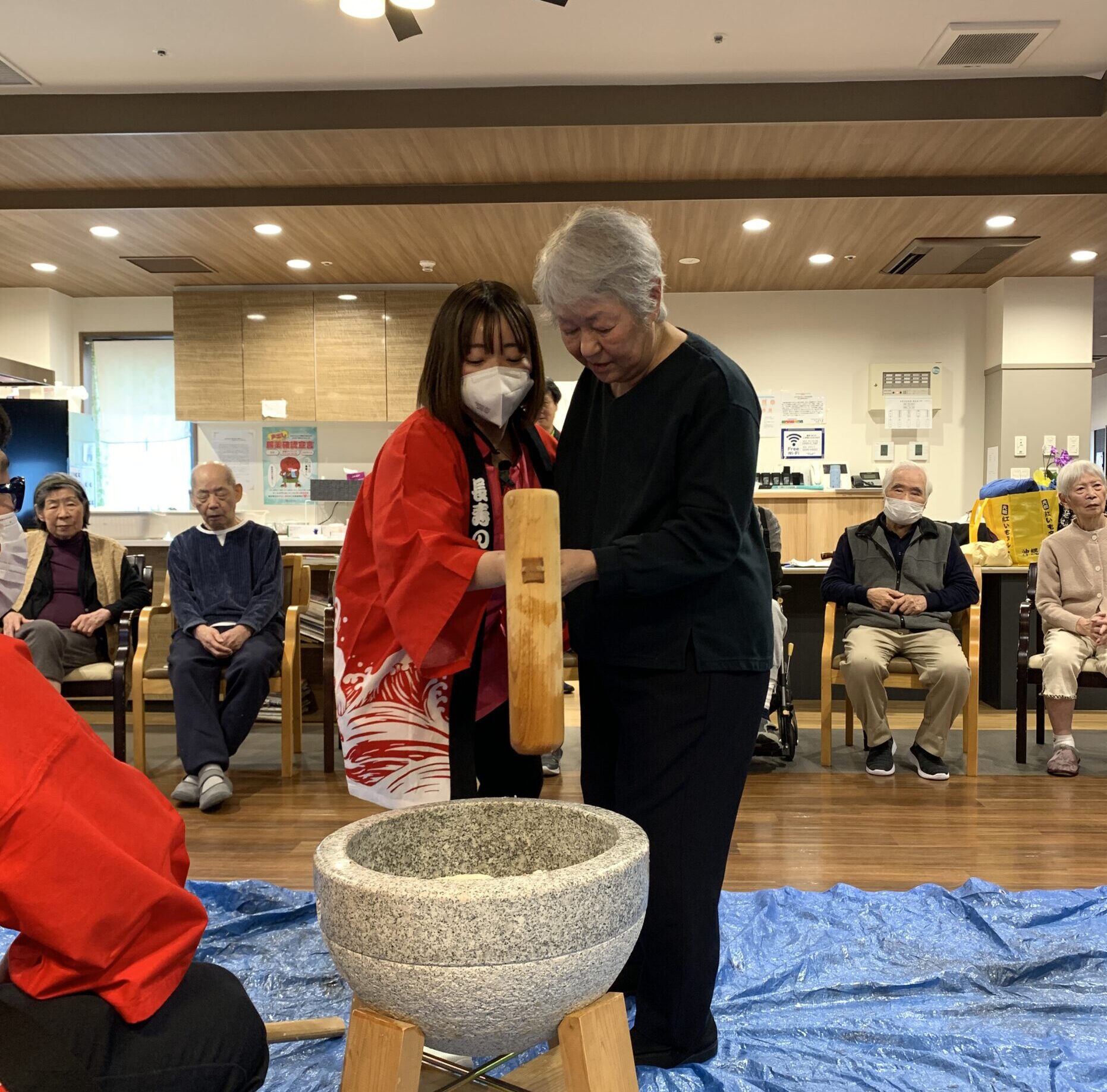 お正月用の鏡餅をつくるための餅つきをしました! 朝からとても楽しみにしており、力いっぱいお餅をついてくださいました(^^♪ お餅をついている方を皆様が「頑張れー!」「よいしょー!」と掛け声をかけてくだ[...]