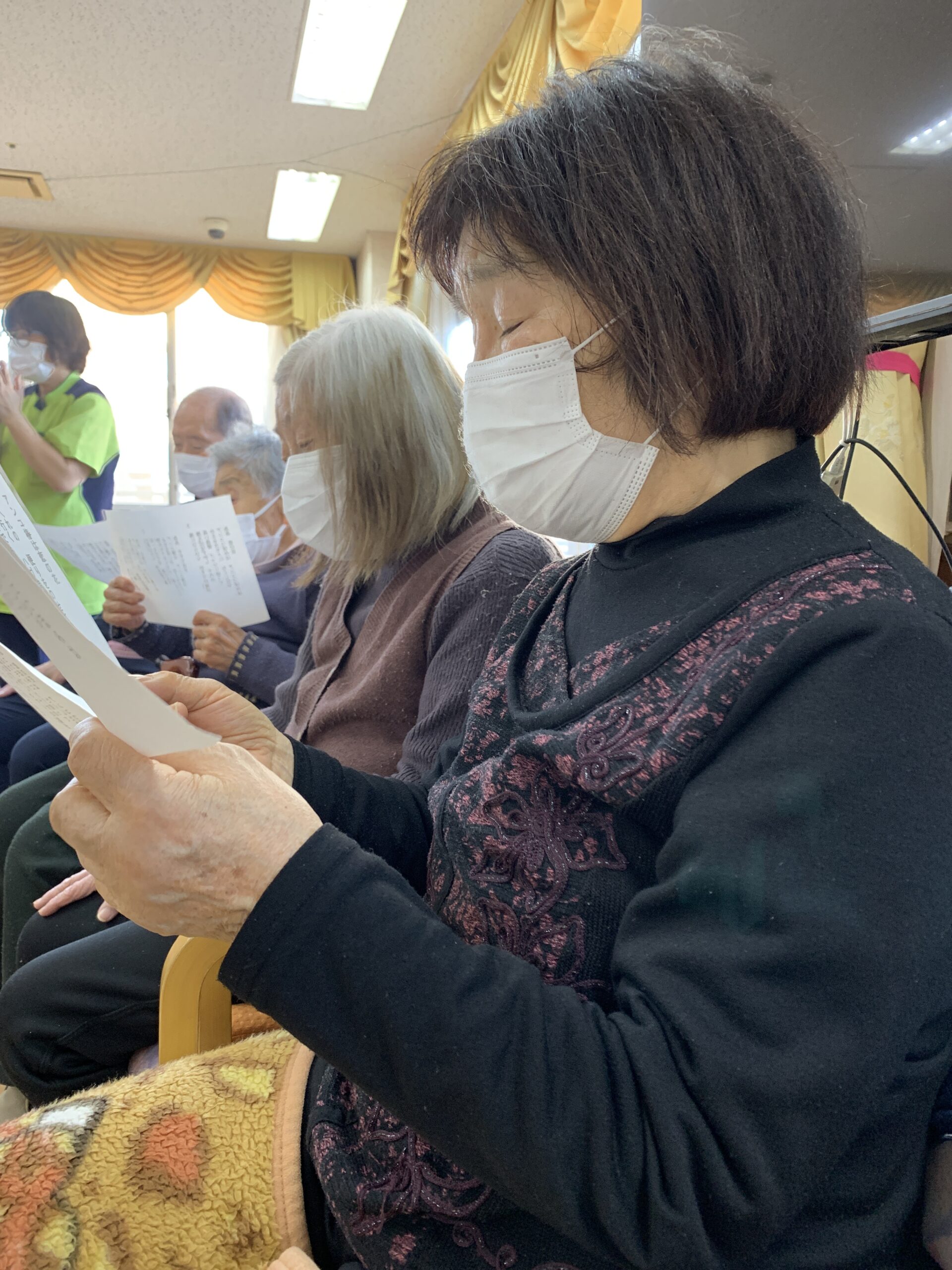 楽譜を目で追いながら、ひとつひとつの音を確かめるように指先を動かすみなさん。職員と一緒に確認しながら進めることで、自然と表情も和らぎ、懐かしい音色がフロアにゆったりと広がっていきました。「この音であっ[...]