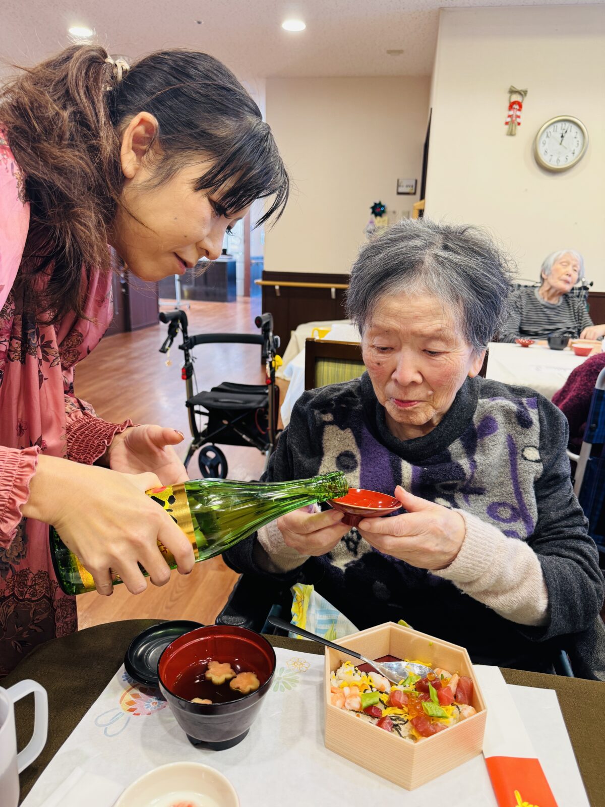 また、お屠蘇を皆様にお酌させていただき、召し上がっていただきました!