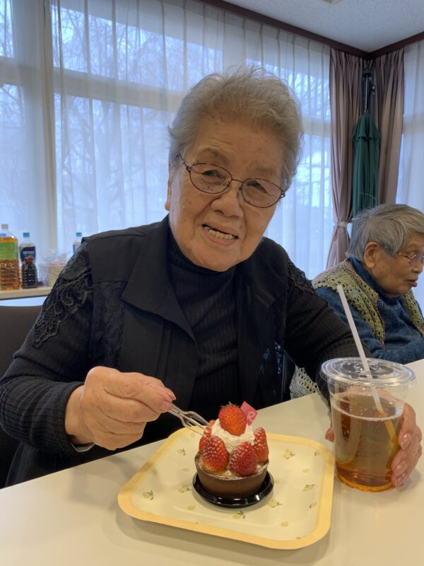 午後から、ろまん亭にケーキを買いに行きました!!お好きなケーキを選ばれる際には皆様笑顔が見られ、楽しいひと時になりました。帰ってからケーキを召し上がり「美味しいね」と会話も弾み心もお腹も満たされました♪