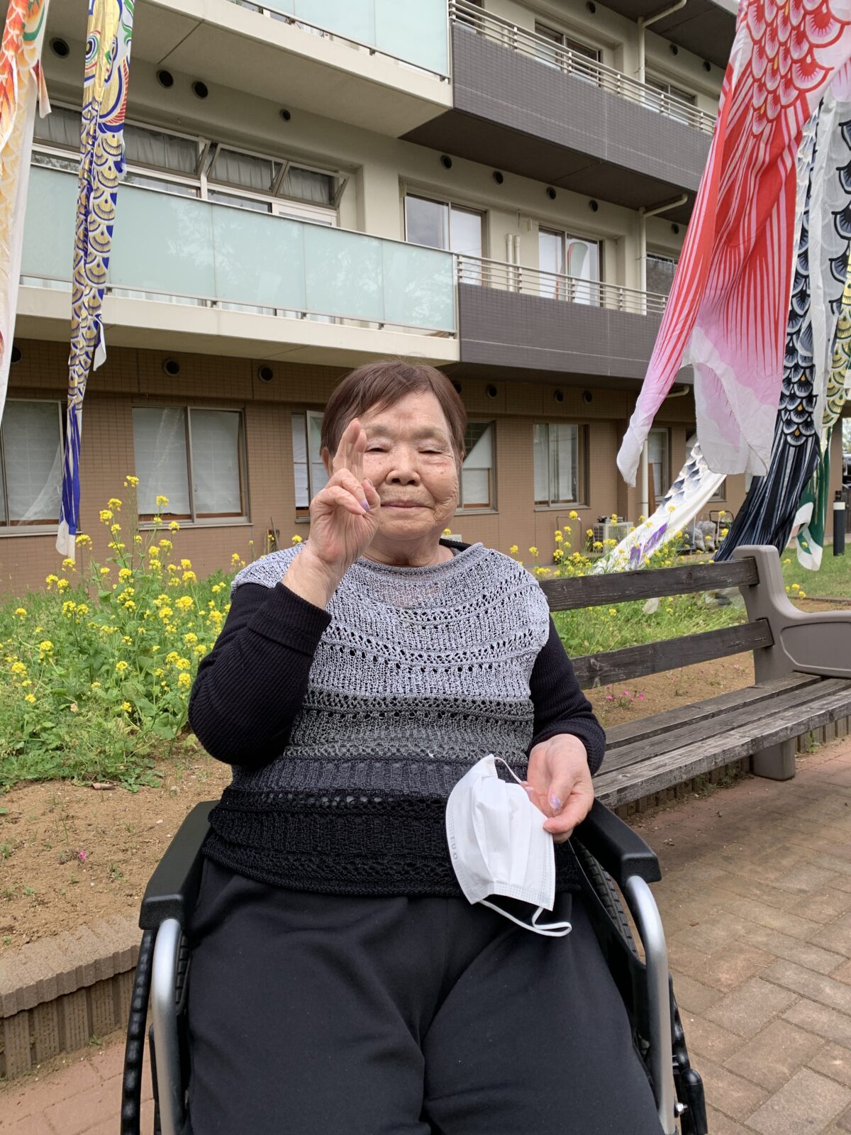 早速ですが、施設の中庭で鯉のぼりがたっておりました!!!