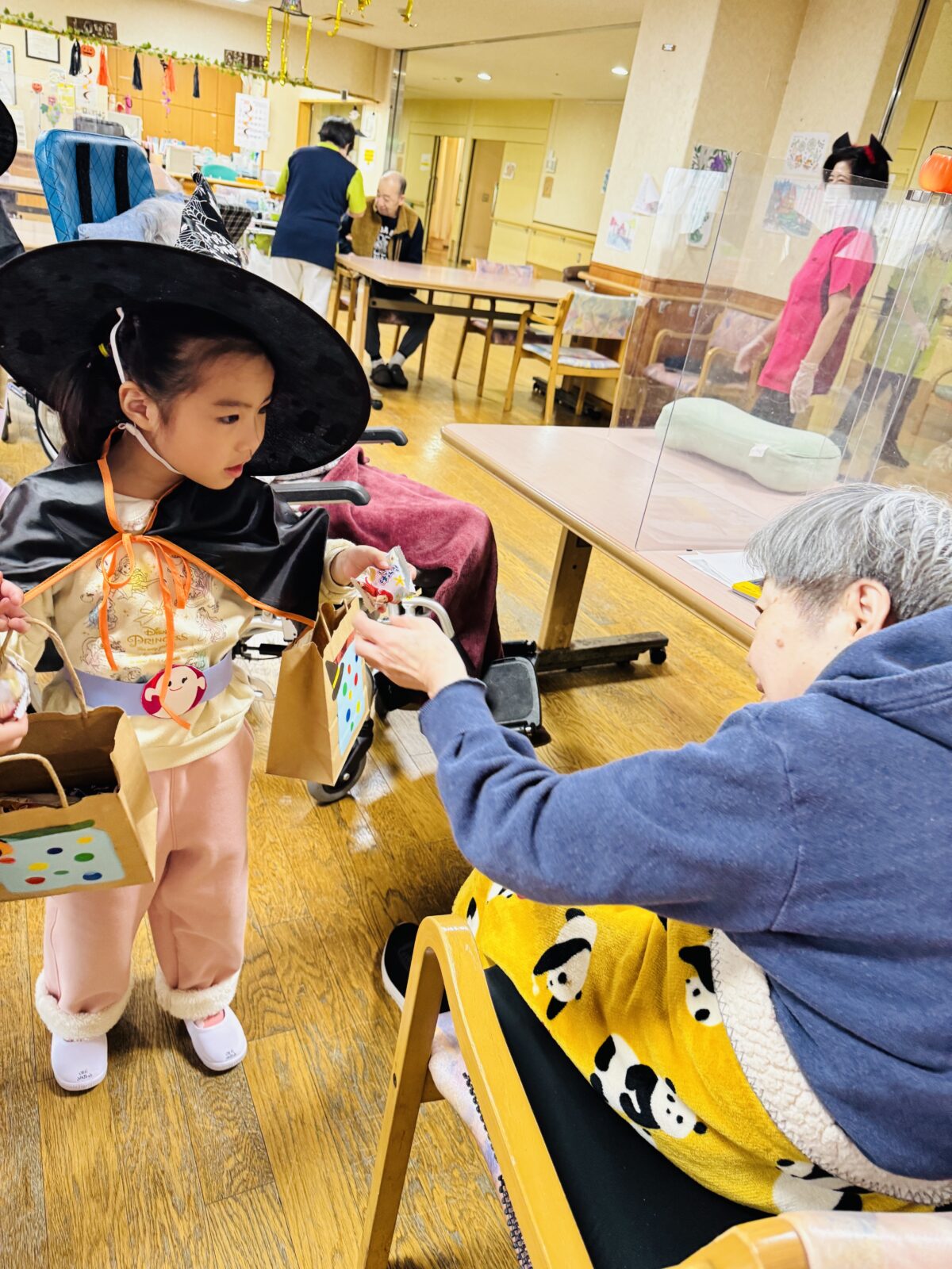仮装をしている子供たちに「とても可愛いね~!」「ハッピーハロウィン🎶」と皆様それぞれお声をかけておりました!(^^)!