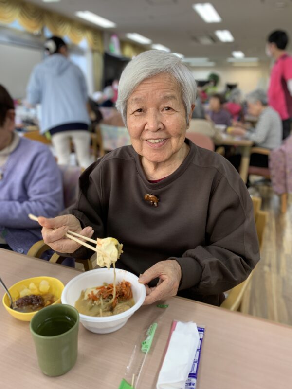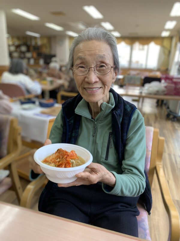 勝負の後には味噌鍋を食べました。今日はキムチ・チーズ・柚子胡椒のトッピングをのせて召し上がって頂きました。