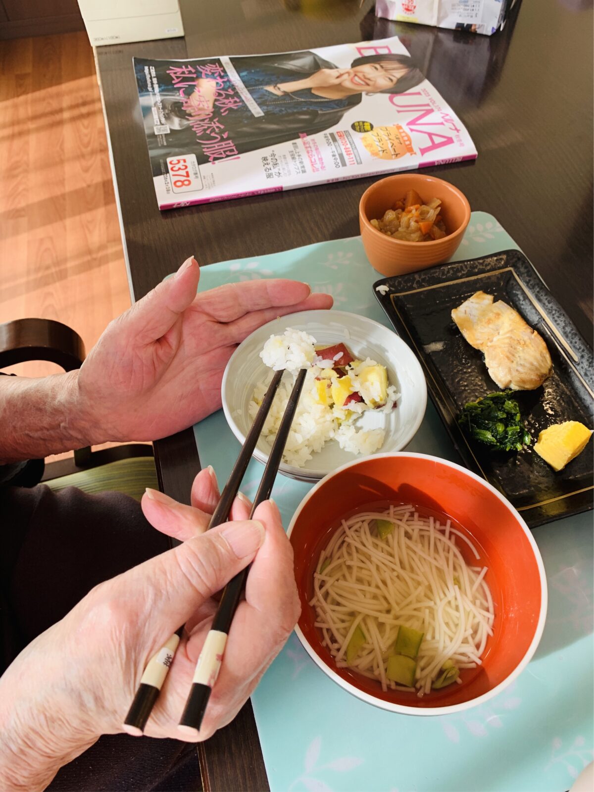 今日は秋の味覚のサツマイモをお客様に切っていただき、サツマイモご飯にして召し上がっていただきました!甘~いサツマイモはとても美味しかったです♪