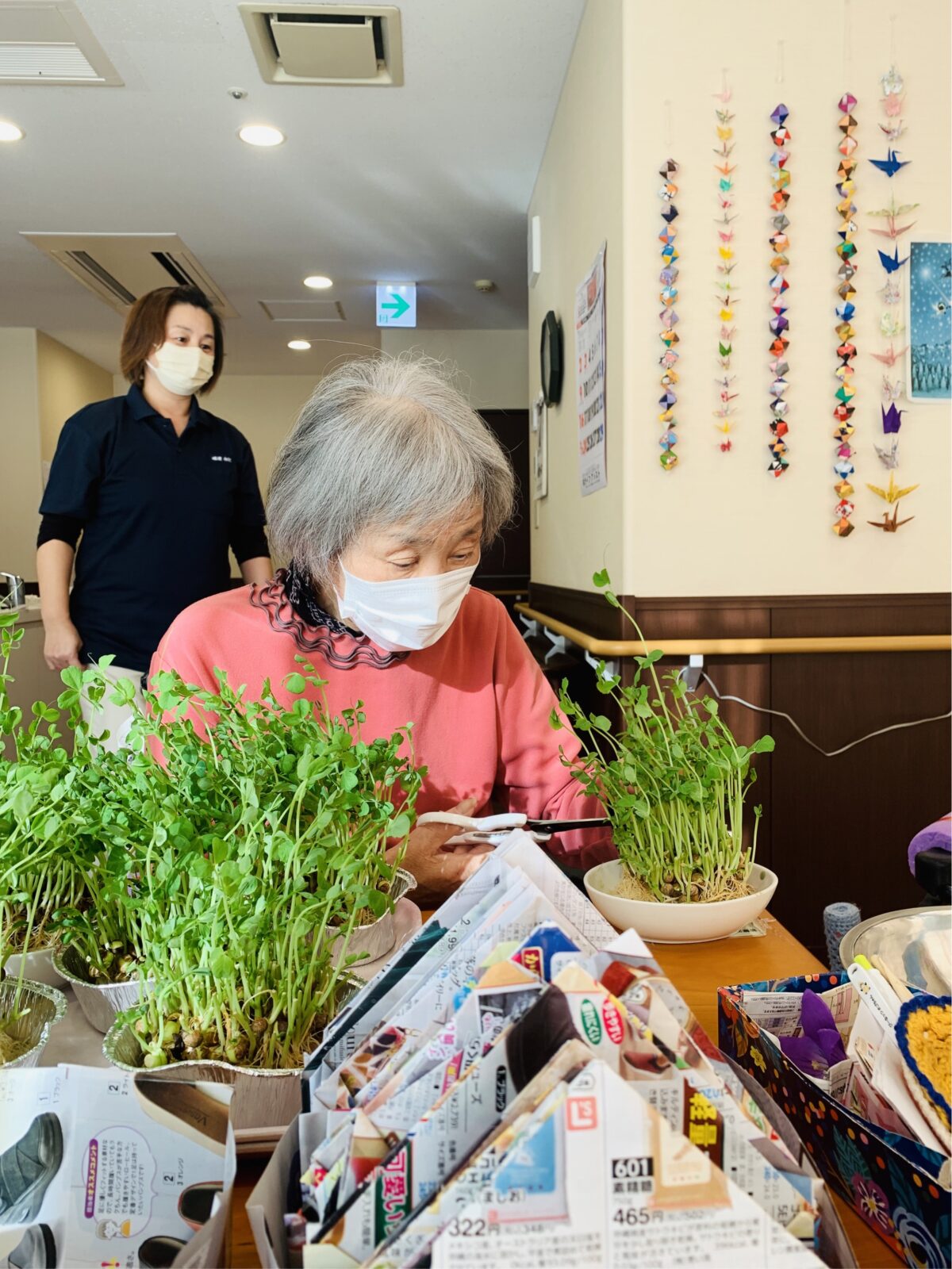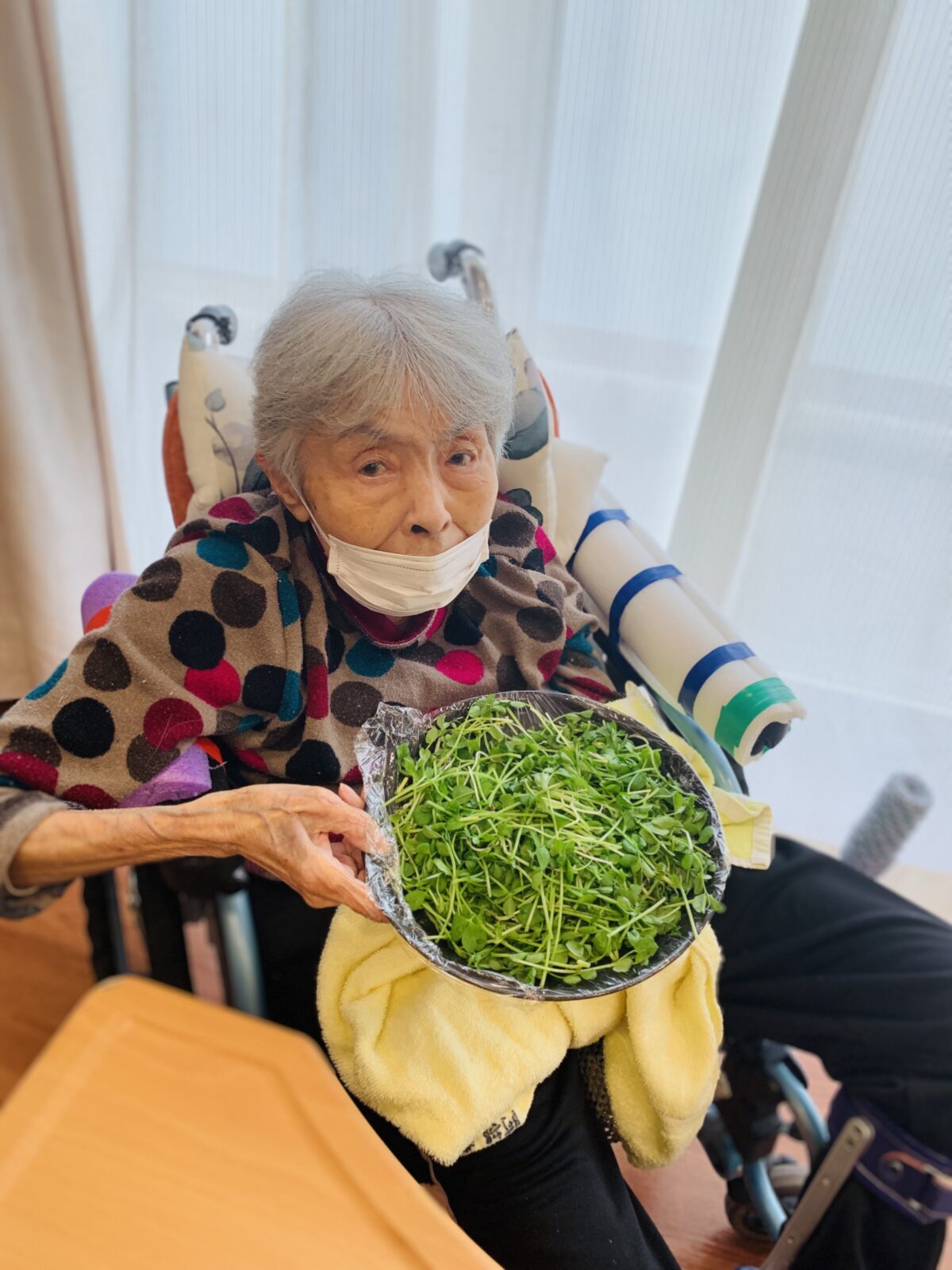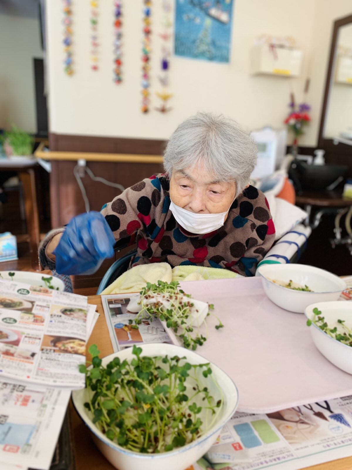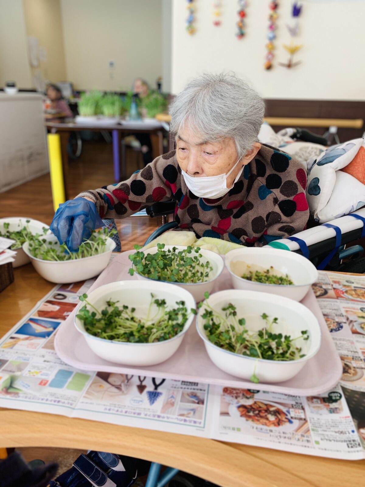 また、新館2階で育てたかいわれと豆苗を、醤油と鰹節と和えて食べました!こちらもシンプルですが独特の味が癖になりそうでした♪