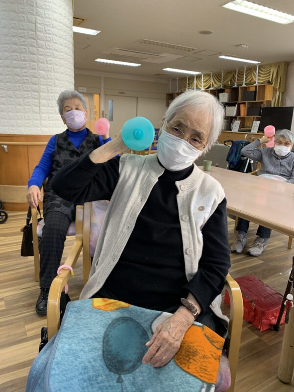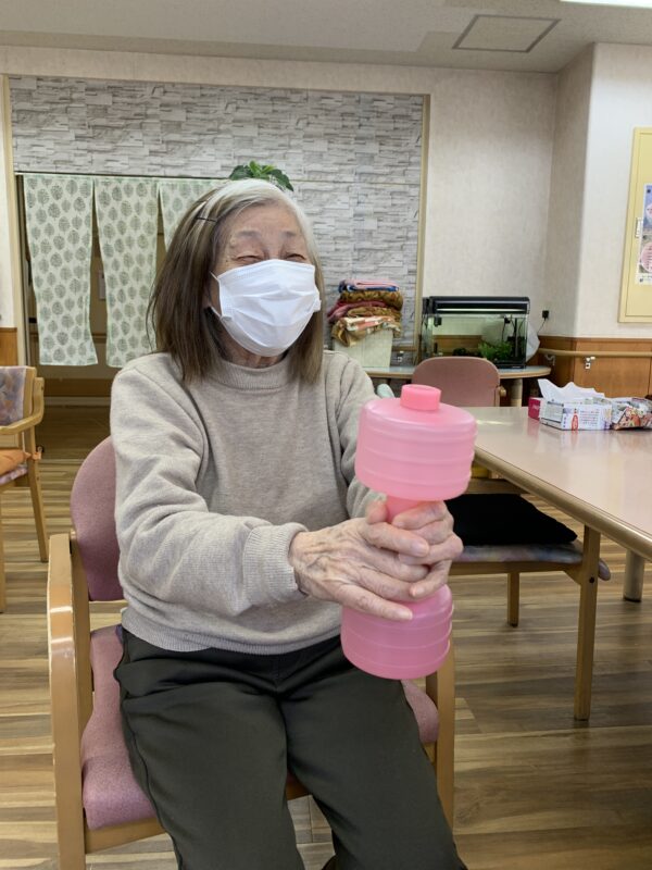 今日は午後からダンベル体操!!リズムに合わせて楽しく体操。ゆっくり丁寧に動かし筋力アップを目指しました。