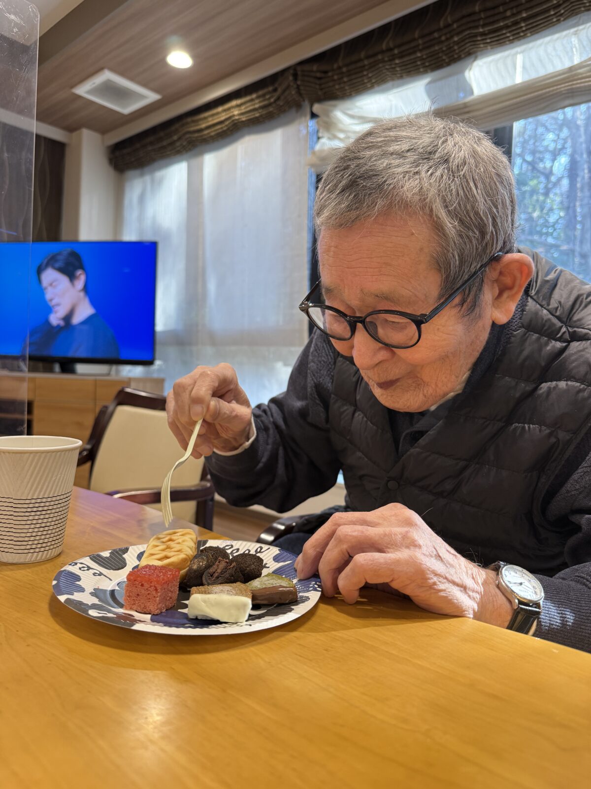 本日はバレンタインということで、お昼はハートがかかれたオムライス、おやつはチョコレートを使ったおやつを召し上がって頂きました!