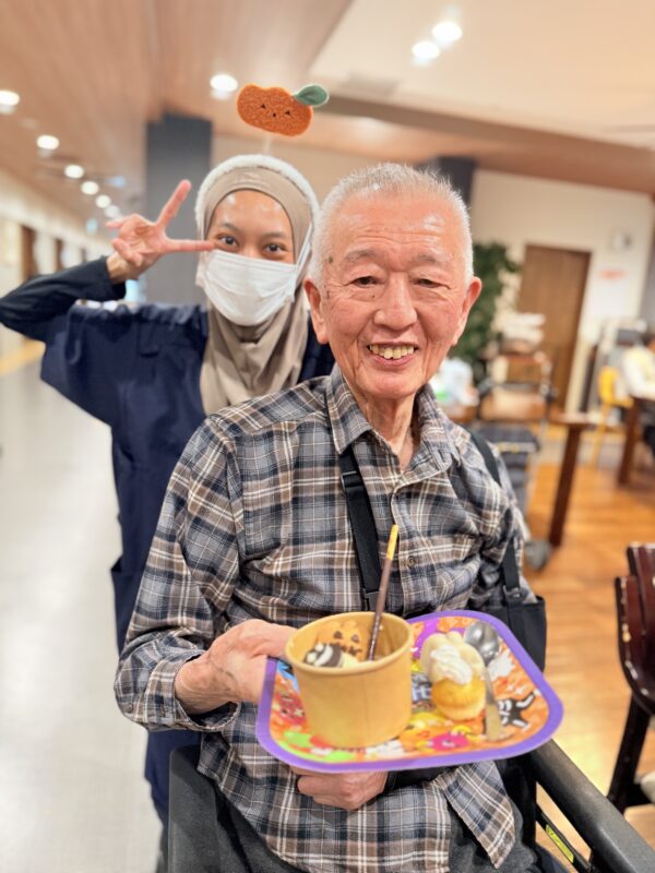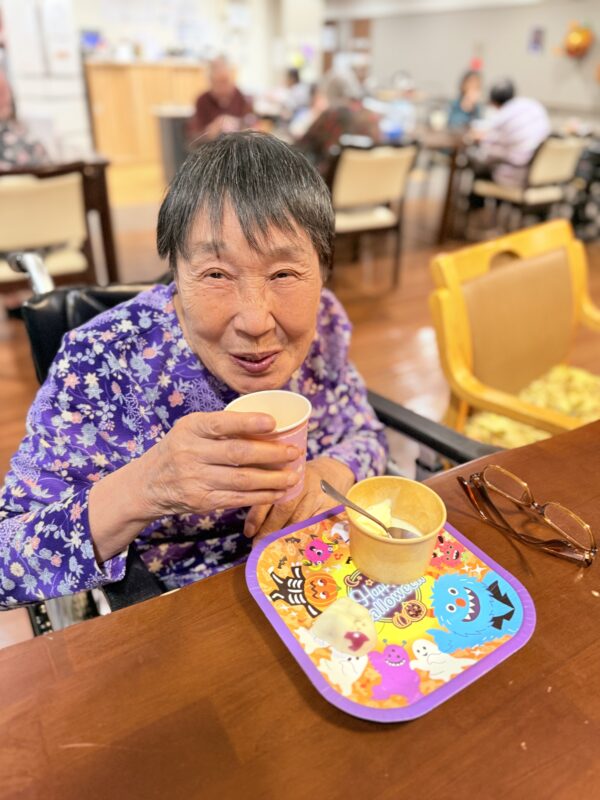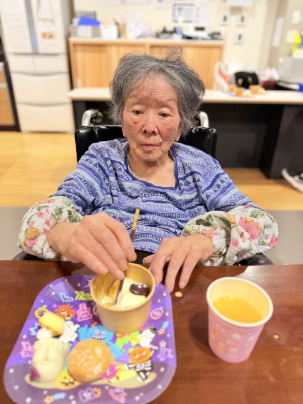 デザートをお渡しする際は職員から「ハッピーハロウィン!」とお伝えすると皆様も「ハッピーハロウィン!」と応えてくださり、とても楽しい日になりました!