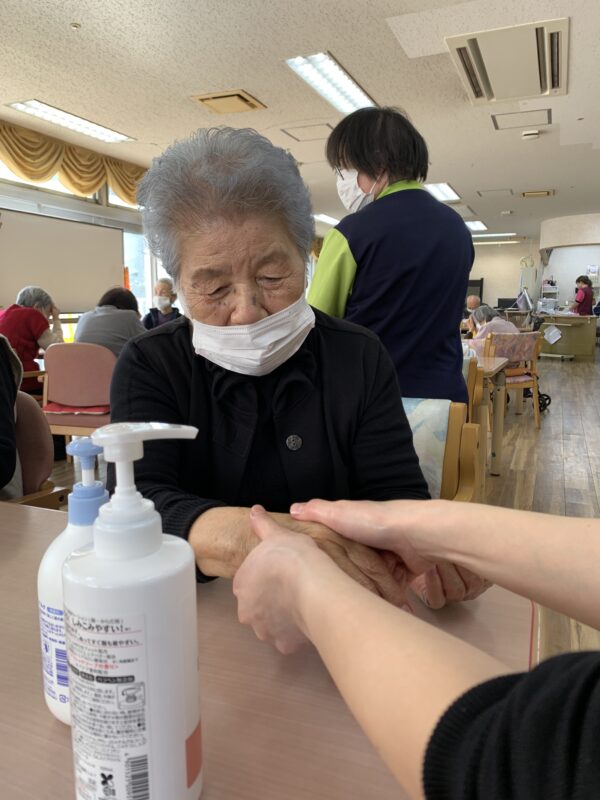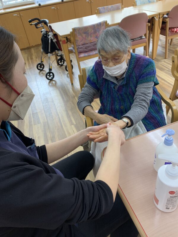お風呂上りのポカポカした手にハンドマッサージを行いました!!ゆったりとした時間の中で自然と表情もやわらぎ、心も体もほっとするひとときとなりました。