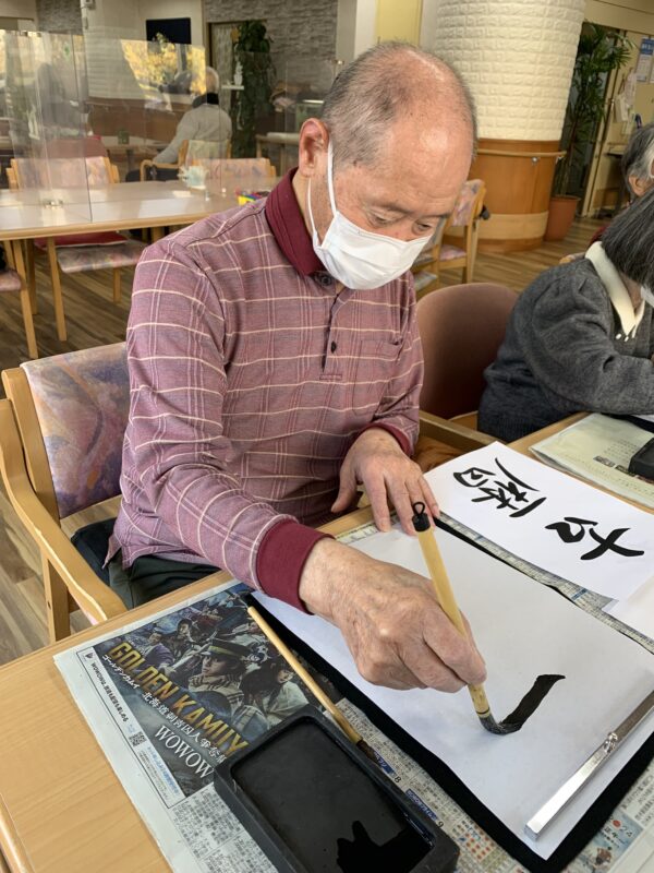 二つ目は、書道です。沢山のお客様が参加してくださいました。冬にちなんだ言葉に挑戦です!!