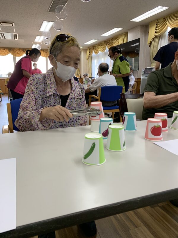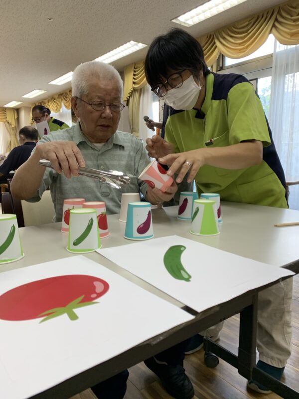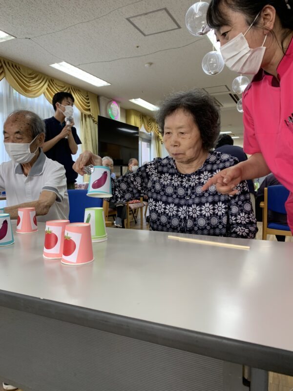 テーマは☆夏野菜☆野菜クイズをだしたり、チームで協力し野菜を収穫するゲームを考えお客様に楽しんでいただけるよう企画し頑張りました!!最初は緊張もしていましたが、だんだんといつもの笑顔がもどり賑やかな時間となりました。