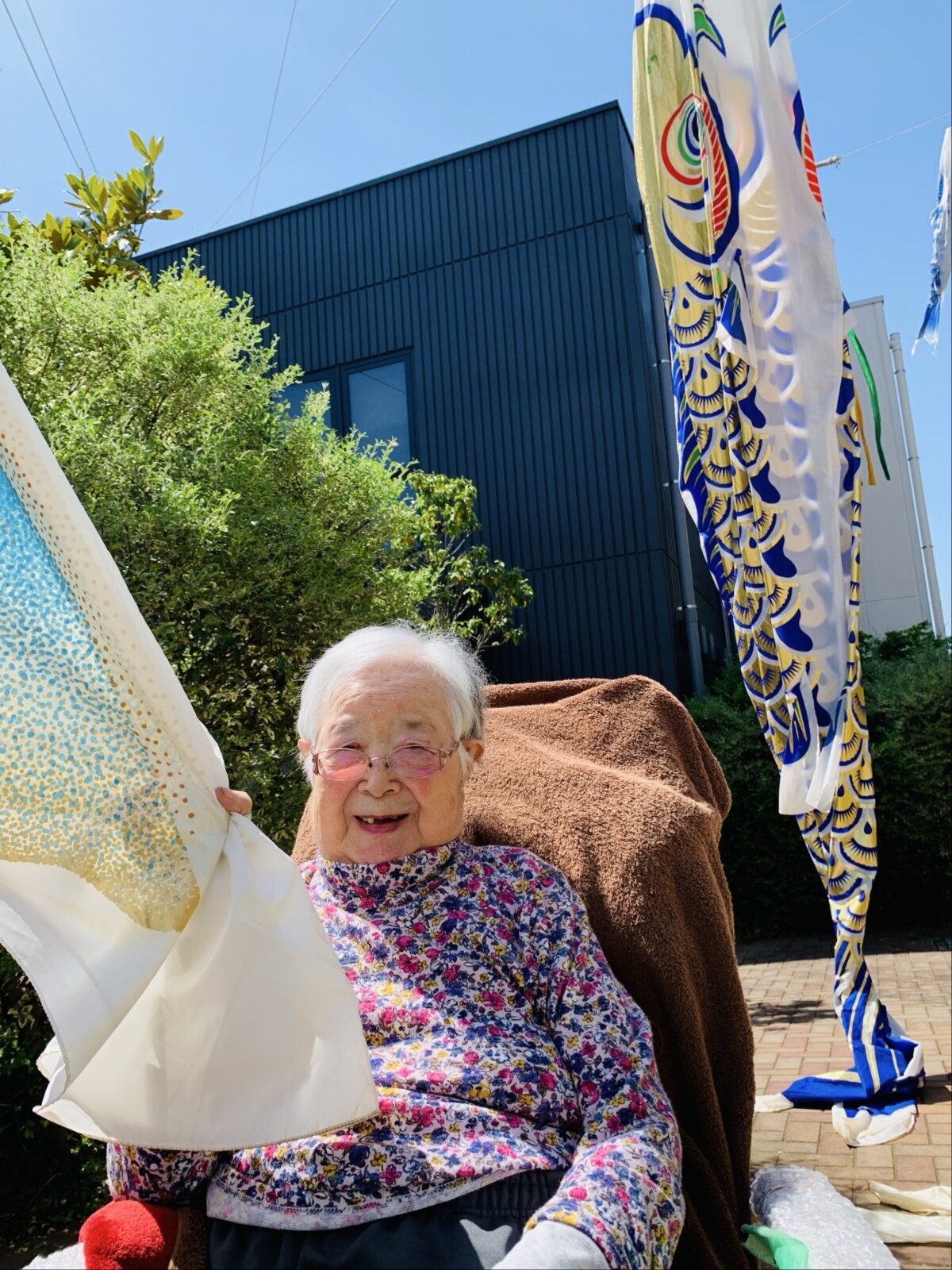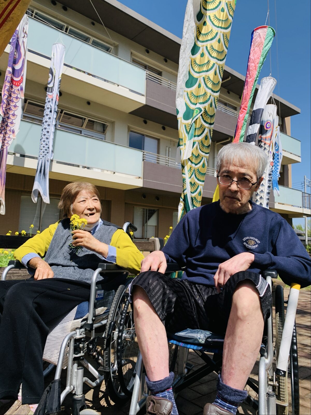 今日はお天気が良かったので外気浴をしました。鎌ヶ谷翔裕園の中庭にはたくさんのこいのぼりが泳いでおり、「いっばい泳いでるね~」「もうそんな時期なのか!」とお話をされながら外気浴を楽しまれておりました♪
