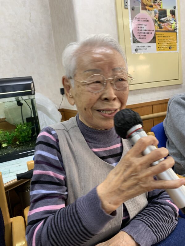 本日は、デイサービスで大人気のカラオケです!!季節の歌や懐かしい歌謡曲が流れ始めると、自然と手拍子や合いの手が入り賑やかな時間がスタートしました♬合間には会話も弾み、次は誰の番かとワクワクされておられました。歌うことは、気分転換になるだけでなく、呼吸機能や口腔機能の活性化にもつながると言われています。何より、歌い終えたあとの皆さんの晴れやかな表情がとても印象的です!!まだまだ歌いたい!!とそんな嬉しいお声に包まれながら、心も体も元気になるひとときとなりました♬