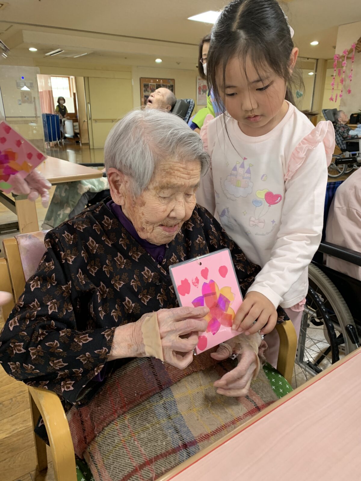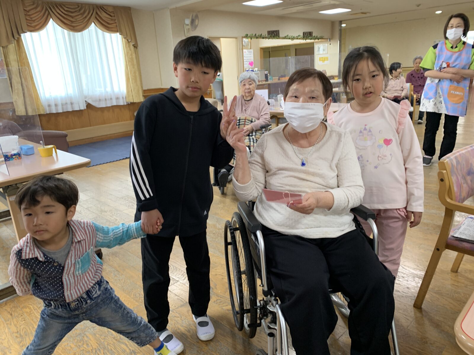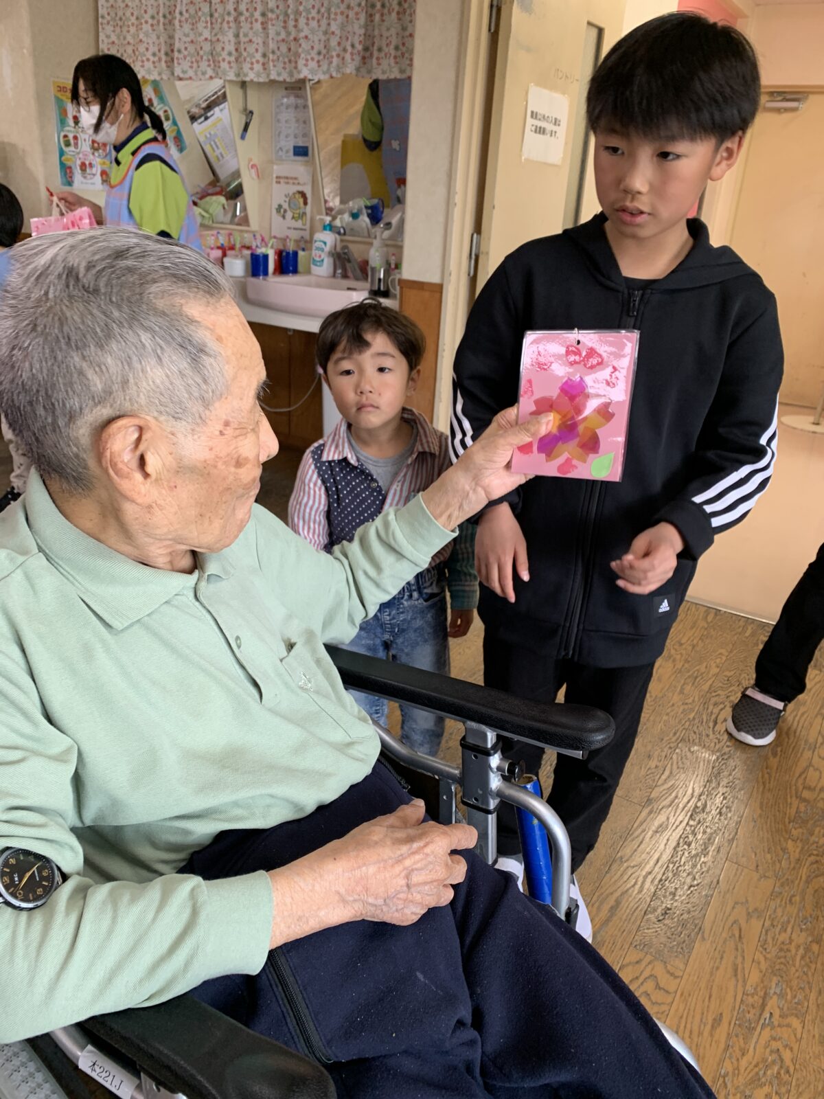 翔裕園の託児所のお子さんが、遊びに来てくれました(^^♪ 皆様「うわ~可愛いなぁ」「こっちにおいでよ」と手招きしたり、涙を流されている方もおられました。お子さんと先生が作ってくれた🌸桜🌸の手作りカードを受け取り、一緒に記念撮影して楽しいひと時を過ごしました。お子さんの笑顔と可愛さに癒やされました💕