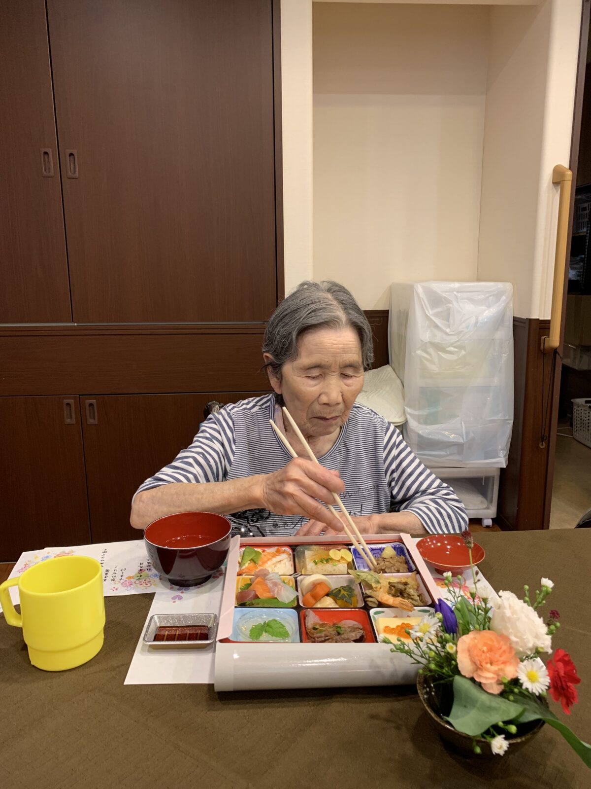 午前には式典行われ、ご家族からのお祝いのメッセージやお手紙はとても感動的で、新館2階から参加された3名の方も喜んでおられました!
