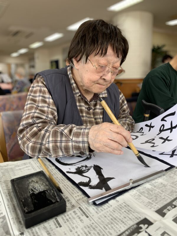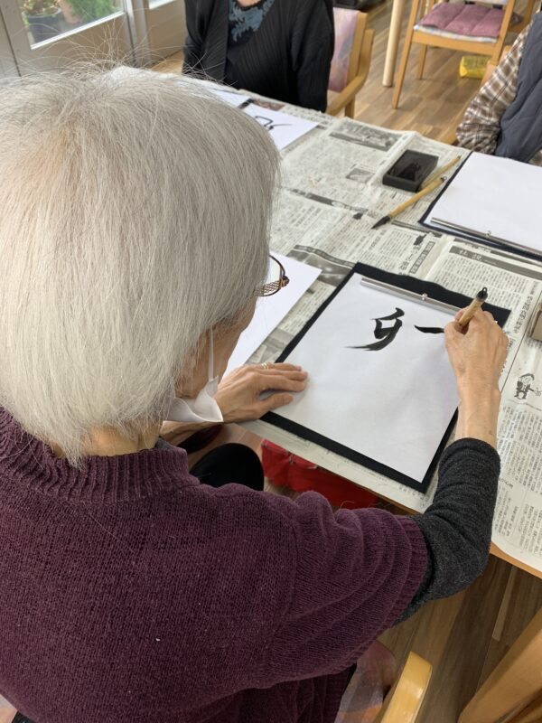 こんにちは!!今日は午後から書道に取り組みました。筆を持つと自然に表情が引き締まり真剣な眼差しで一文字一文字丁寧に書かれていました。