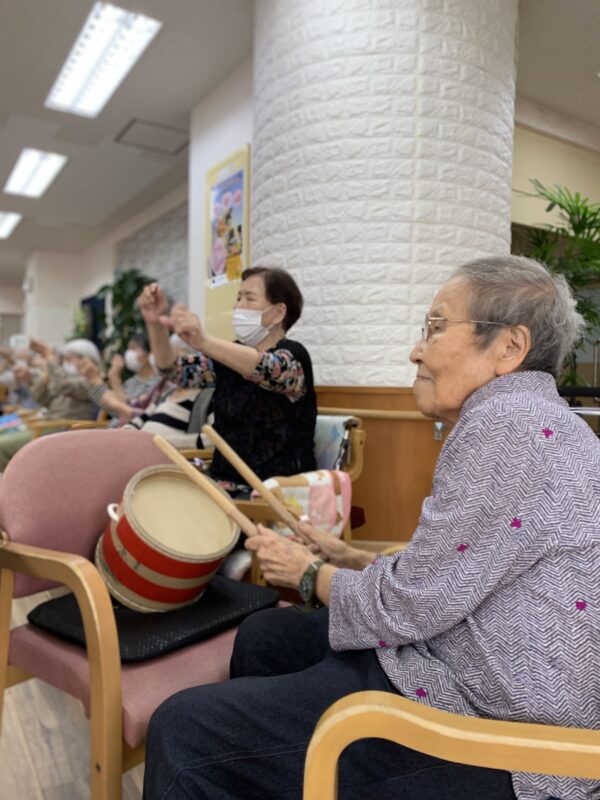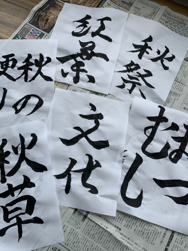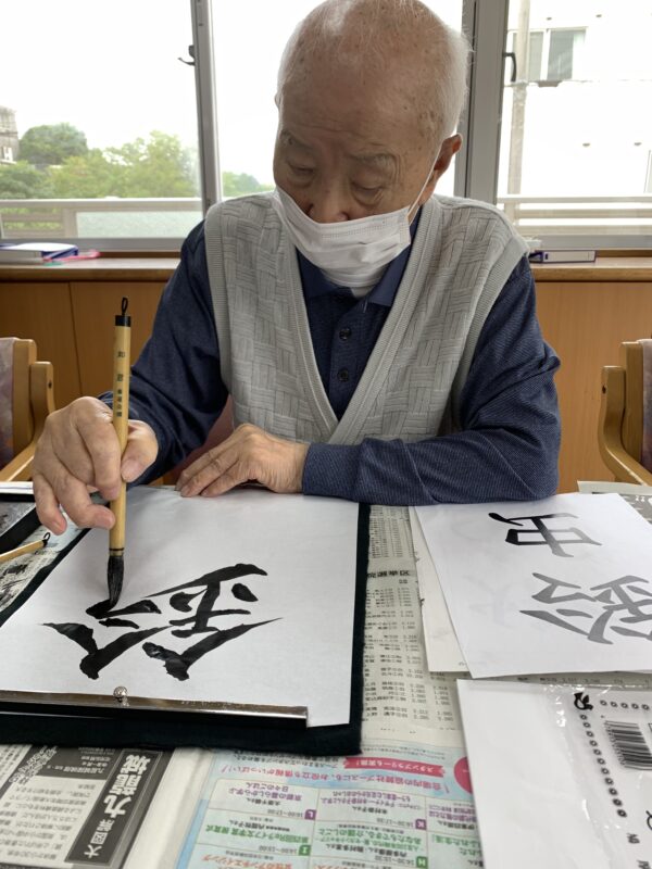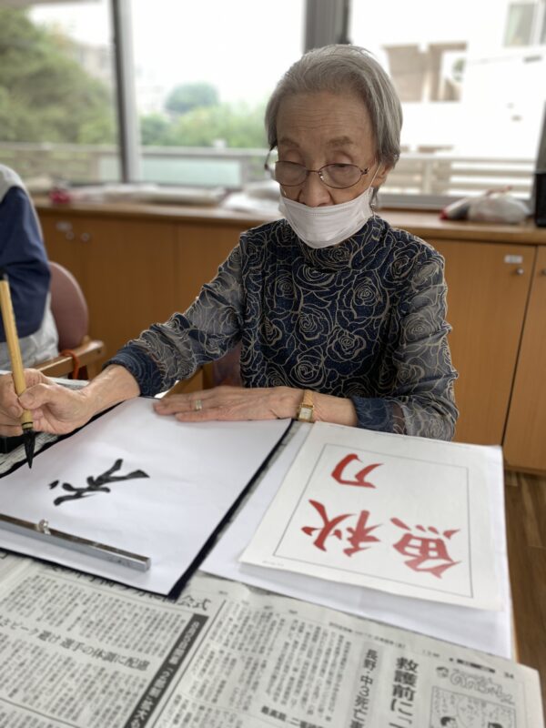 舞踊教室では、河内音頭やおなじみの曲にあわせて身体を動かし、さらにを太鼓をたたき音頭をとっていただく場面もあり、元気な音やサテ!ヨイショ!といった掛け声が響き渡りました♪書道教室では、「秋」を感じさせる言葉に筆を走らせながら「やっとね~、10月になっちゃたわね」とこの間までの厳しい暑さを思い返しつつ、秋を楽しみにしておられました♪