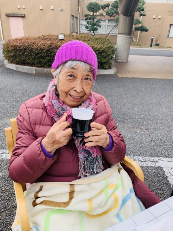 今日はお外で満開の翔裕園梅を見ながら、甘酒を飲んだりお菓子を食べたりと楽しい時間を過ごしました。とても濃いピンクの花びらに「素敵」「かわいい」などお話も盛り上がりました。