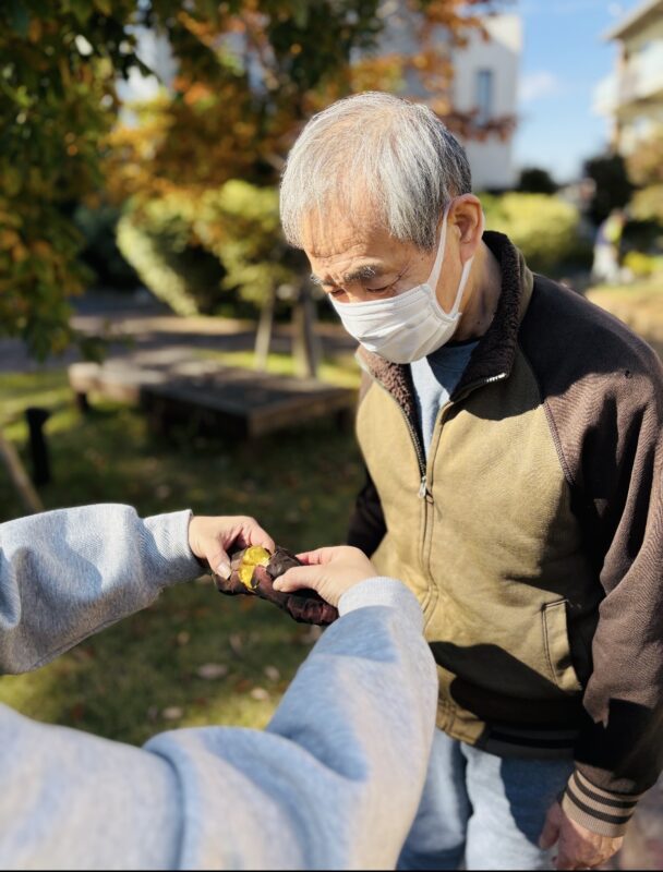 今日は中庭で焼き芋を行っていたので、皆様と一緒に中庭まで散歩に行きました!