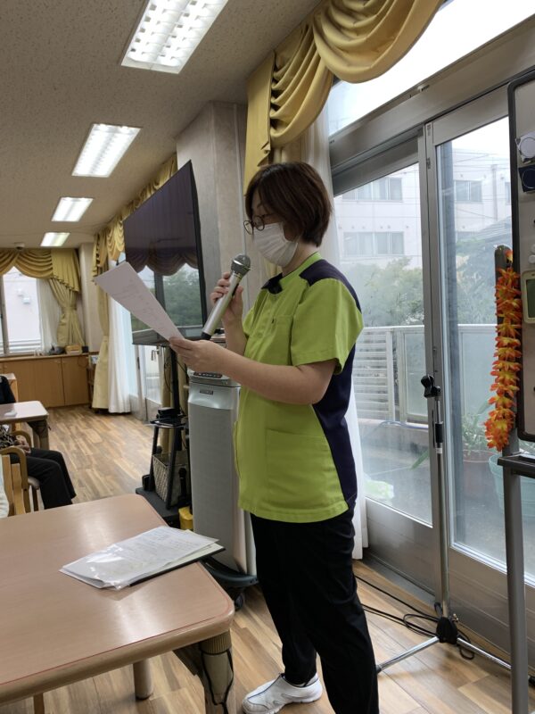 今日は毎月恒例☆看護師講座でした!!免疫アップについて日頃の食生活の話から、免疫クイズ、体操を行いました。そこで免疫アップの食材リンゴを使ったデザートを休憩に召し上がって頂きました。笑顔も自然と溢れて出てきました。