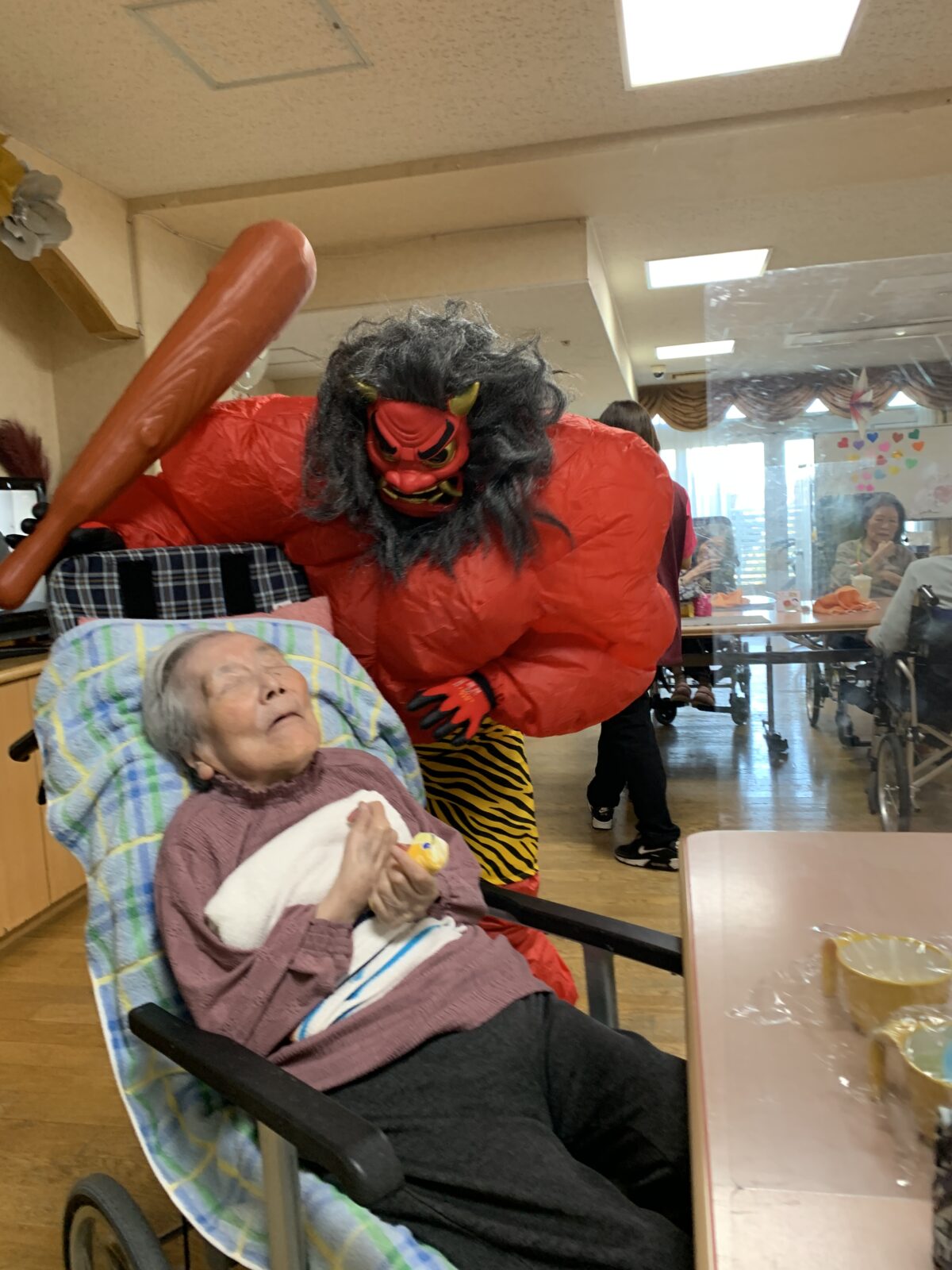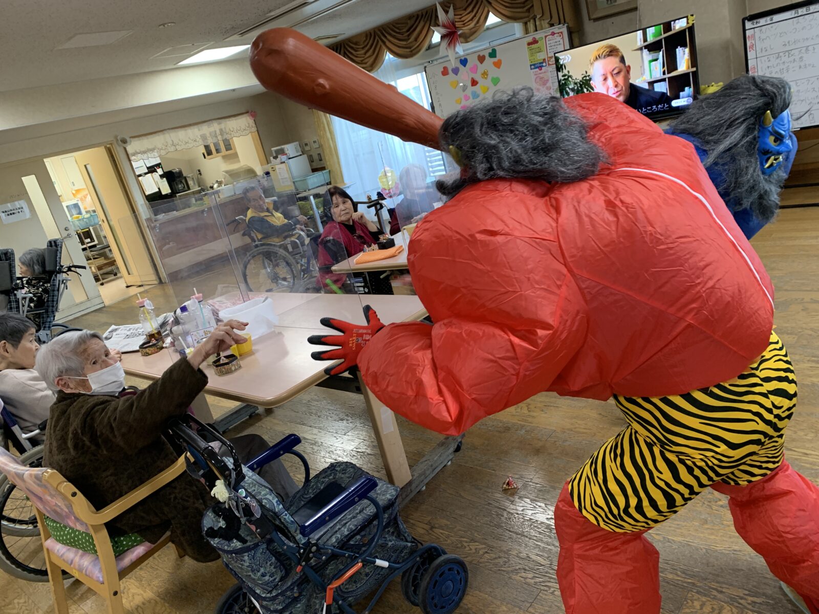 突然現れた鬼たちにお客さんも職員も皆揃ってびっくり仰天!( ゚Д゚)