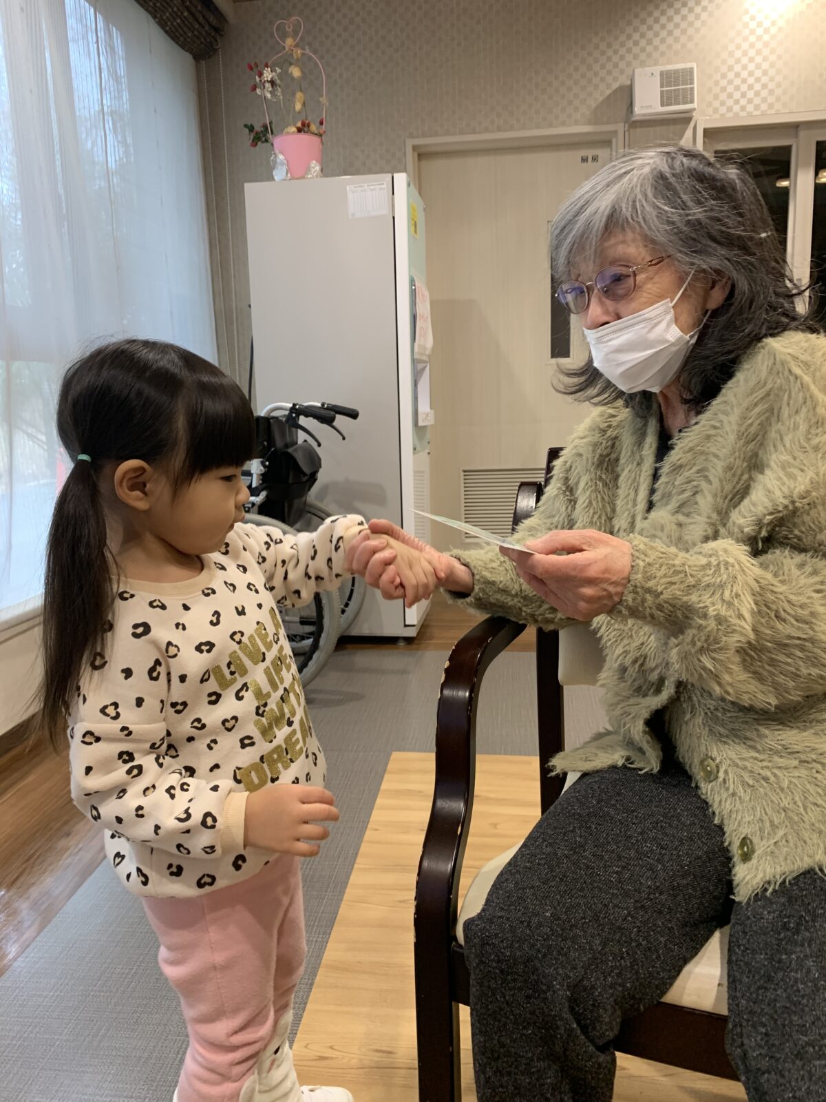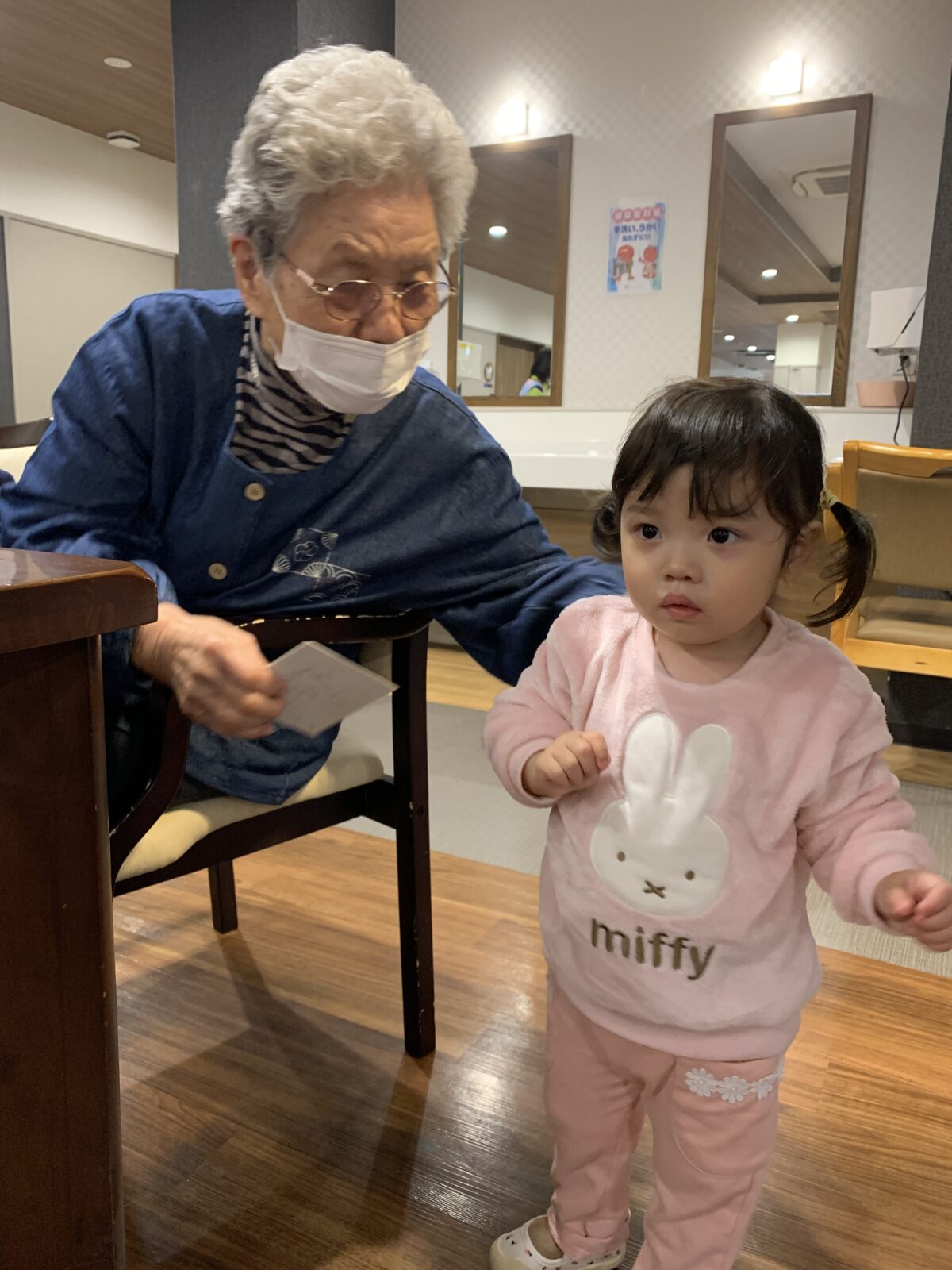 子供たちと交流している時は皆さん笑顔で「いい子だね。可愛いね。」や「ありがとうね。」とお話されていました。