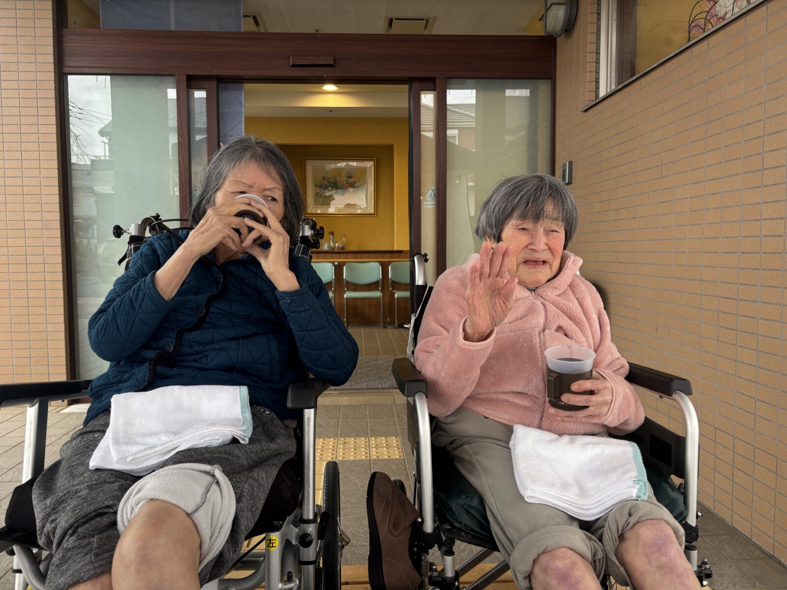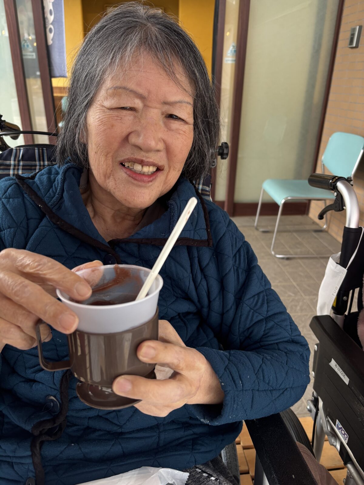 毎日寒い日が続いていますが、足湯に浸かって頂き、体を温めてきました。「あったかいねー!」「気持ちがいいね」と笑いあい、温かなお汁粉を飲んで