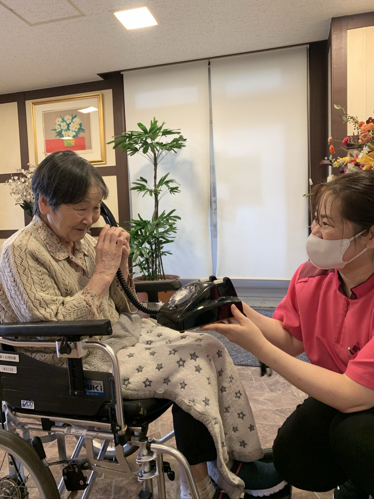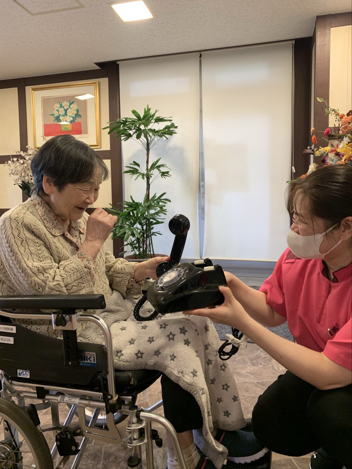 また10月なのに鳴いているセミの声を聞いて「セミさん!もう10月ですよ」と言って皆で大笑いして帰ってきました。室内に黒電話が置いてあり、懐かしんでおられました。