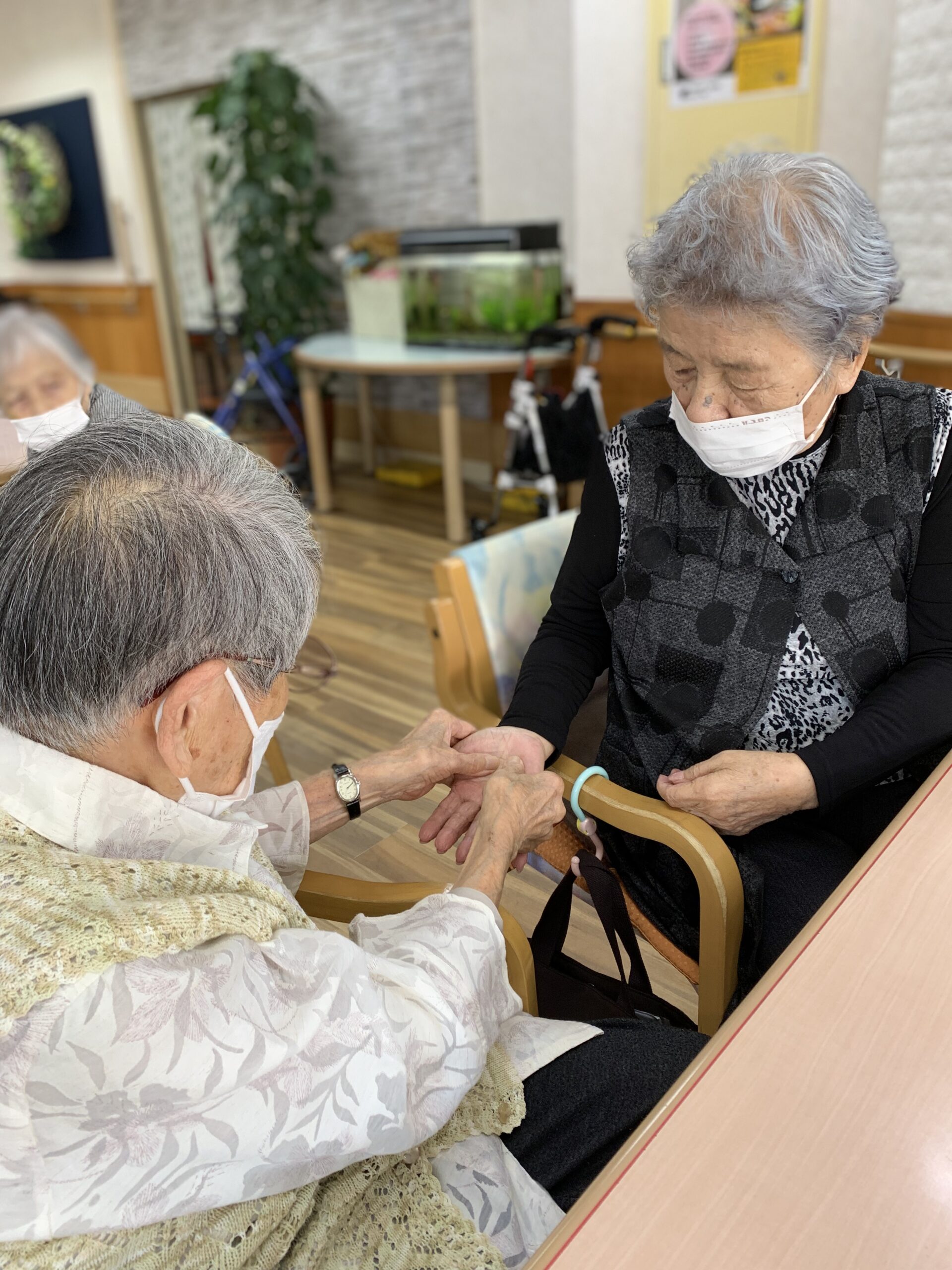 ハンドマッサージを紹介します!! 本日はお客様同士でハンドマッサージをし合う時間を設けました。「手を通じて心が通う」とはまさにこのこと。笑顔と会話が自然と広がり、和やかなひとときになりました。触れ合う[...]