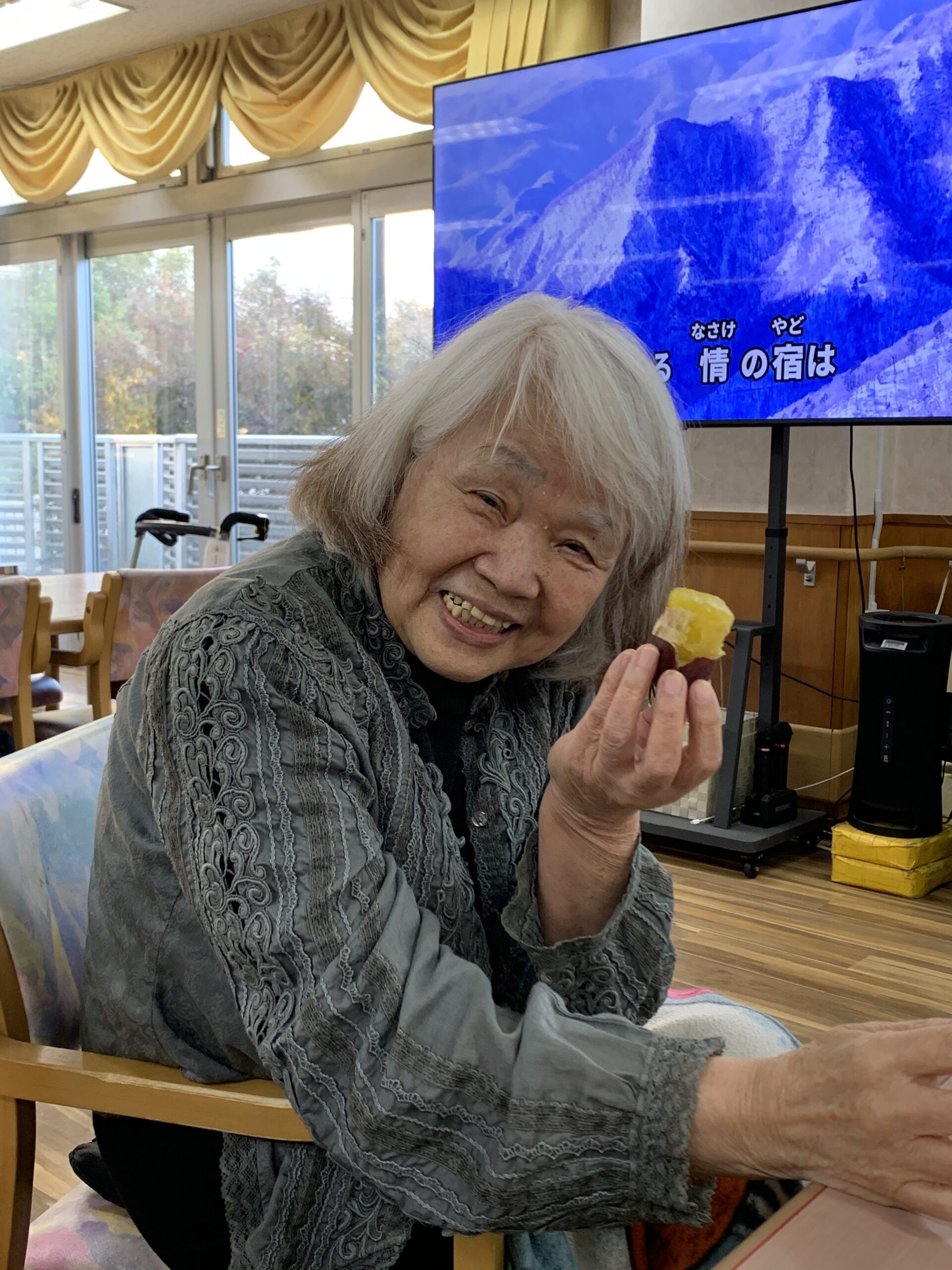 皆さんの大好きなカラオケでした♪「だんなさま」「青い山脈」等、定番曲からスタートし大盛り上がりの時間を過ごしました。カラオケの途中には石焼き芋を食べました!!ホクホクで甘くてとても美味しかったです![...]
