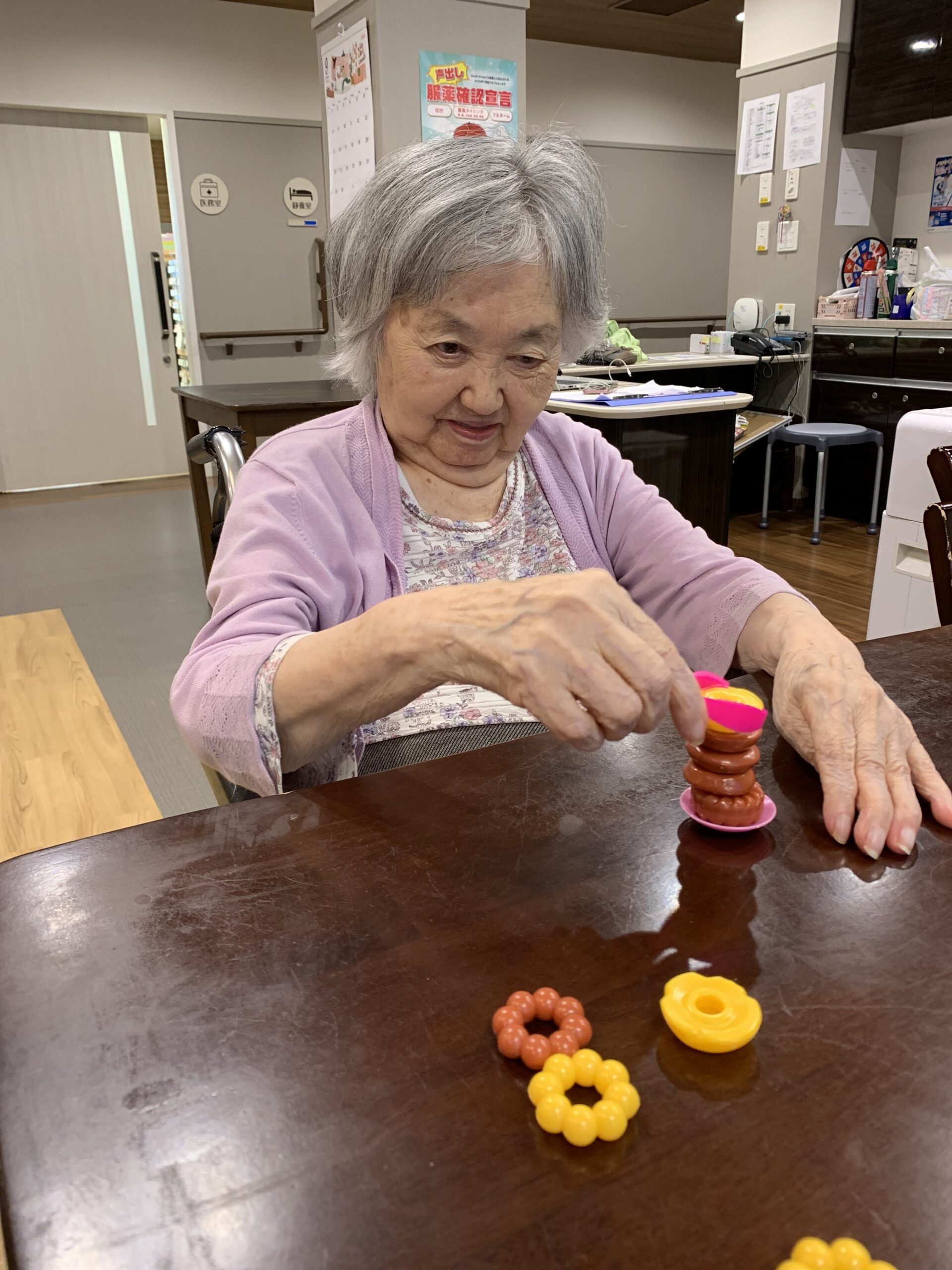 皆さんと一緒にドーナツ積み上げゲームをしました!集中力が勝負の決め手となるゲームですが、夢中になり何回も繰り返しやられる方や思いのほか難しく苦戦する方もいらっしゃいました! 皆さん楽しんでいただけて良[...]