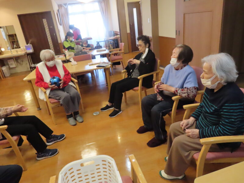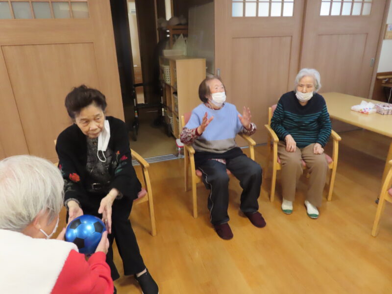 近くに座っている方の名前を呼びながら、ボールを渡していきます。