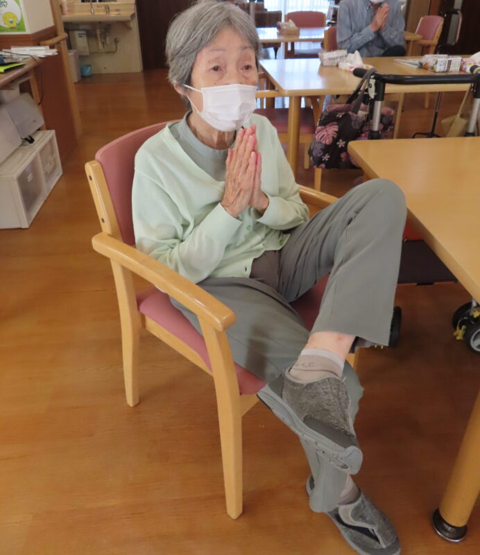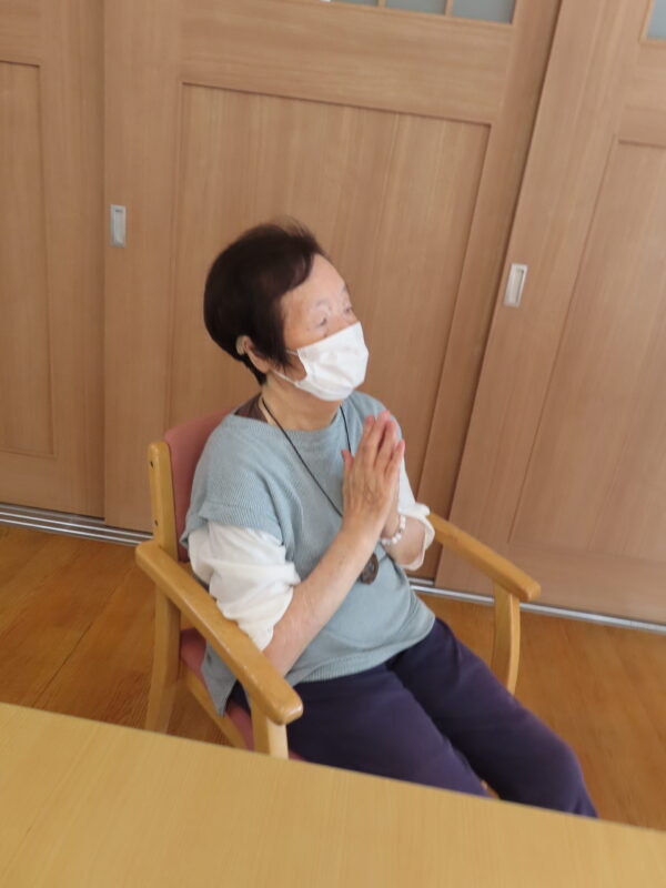 本日のご様子です。今日は体操にヨガを行なってみました。背筋を伸ばし呼吸を整えて