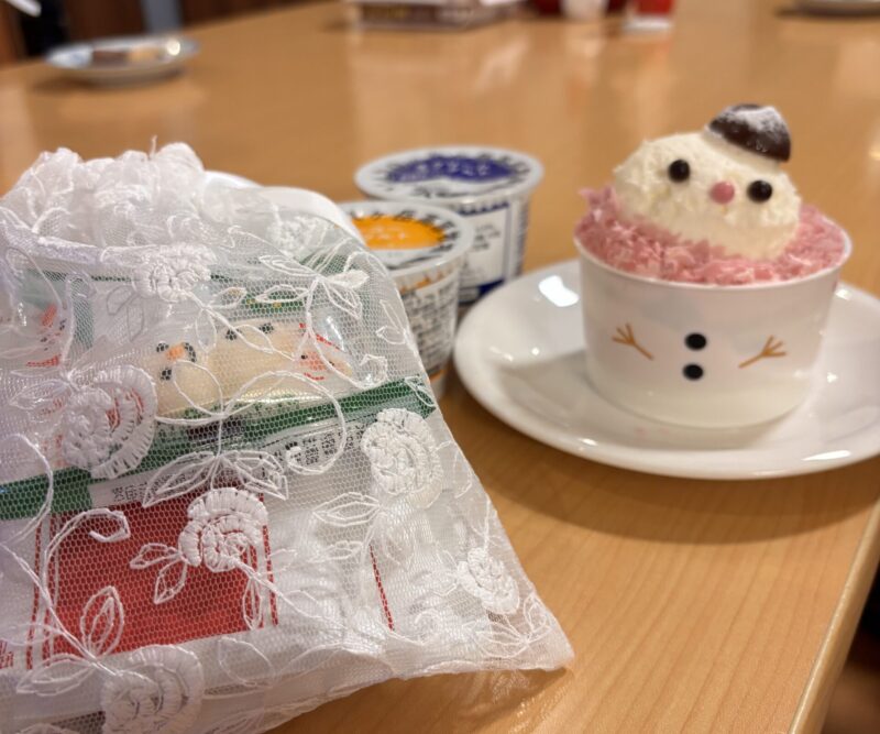 ささやかですがプレゼントのケーキと温かい甘い飲み物です。かわいいマシュマロを浮かべてみましたが、ちょっとシュール。。。