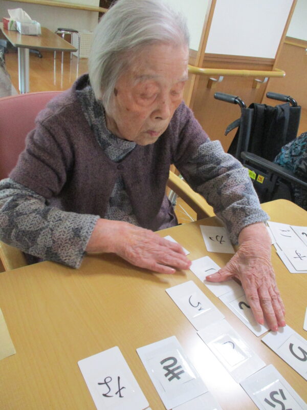 お客様と一緒にひらがなカードで『ことば作り』をしてみました。