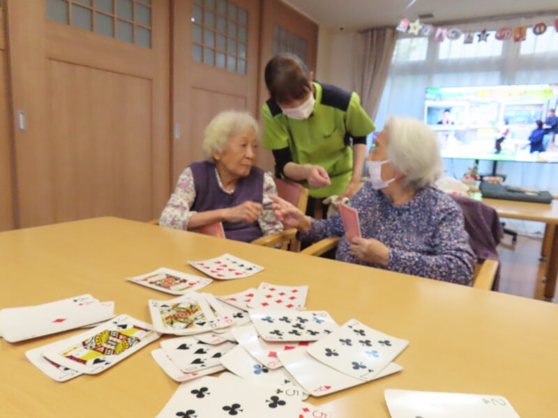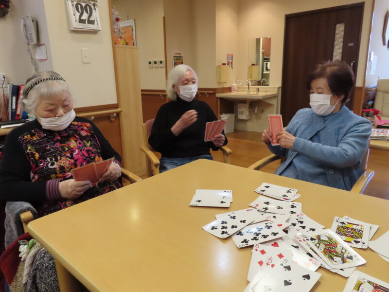 ババ抜きや坊主めくりなどわいわいと楽しんで下っています。
